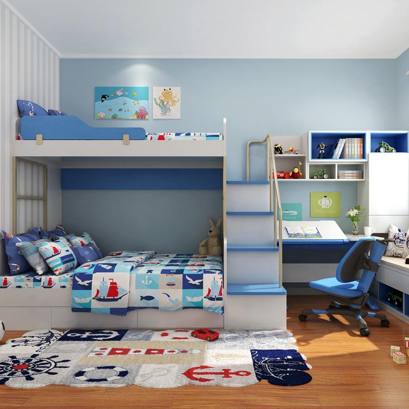 床的高度盡量不要太高,這樣就算是小朋友不小心翻下來了,也不會造成太大的傷害。