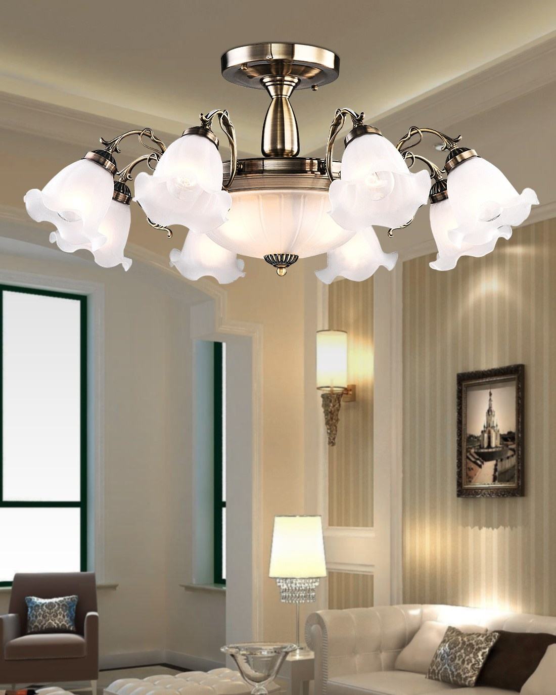 客廳作為一個(gè)重要的會(huì)客場(chǎng)所,選擇燈具的時(shí)候可千萬(wàn)要上心。一般來(lái)說(shuō),明亮不刺眼,美觀不浮夸的燈具是最好的選擇。