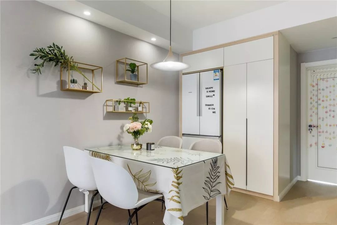 如果廚房的面積不足夠你擺放進一部冰箱,那么把冰箱放在餐廳也是和不錯的選擇。冰箱放在餐廳的優點,是可以避免冰箱遭受油污的侵擾,能夠長時間的保持干凈。缺點是有可能會妨礙到餐廳的動線。