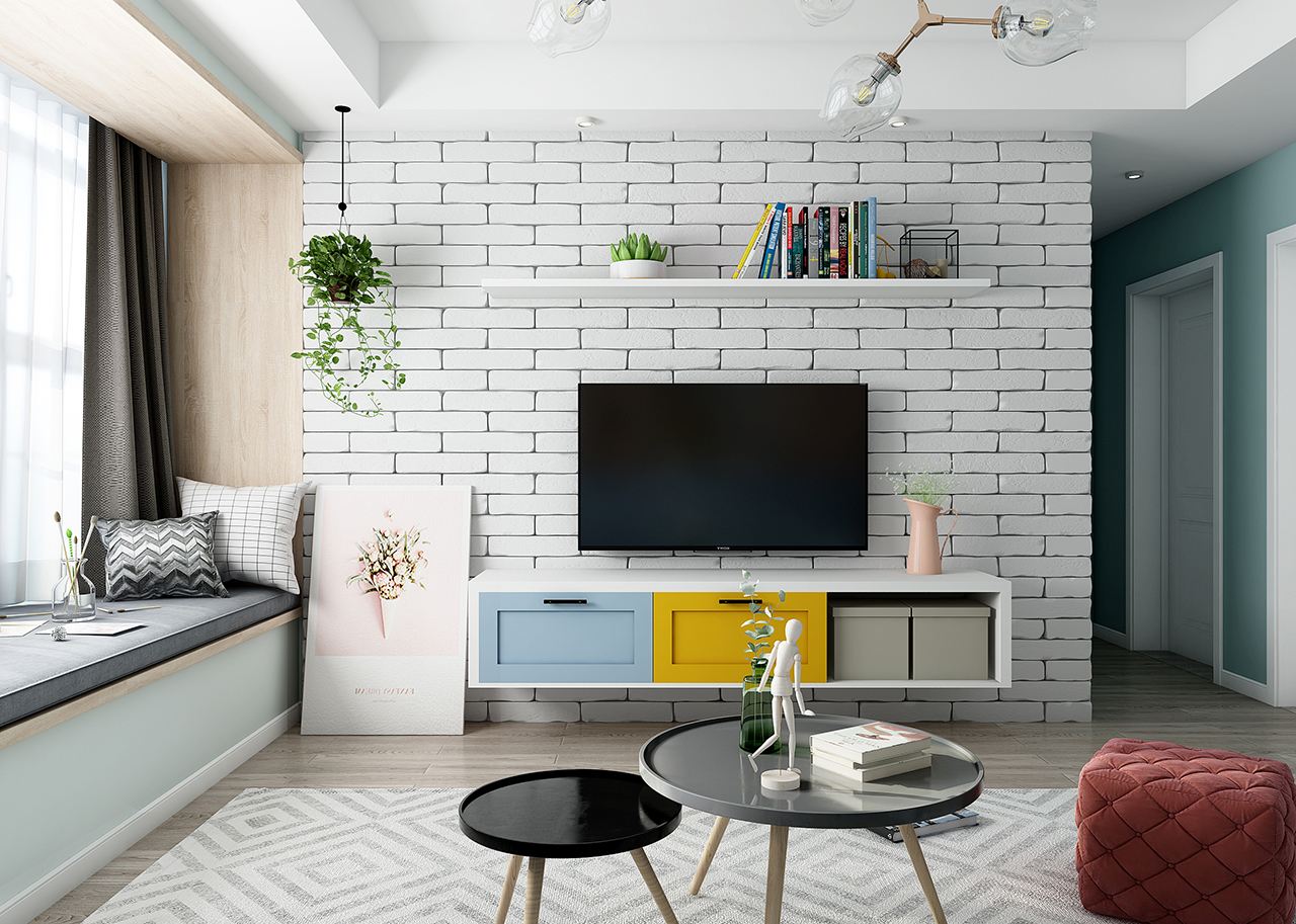只需要在電視背景墻上簡單擺置一兩塊擱板,簡單擺上幾個工藝飾品或者綠植,既不會占用過多的空間,又給客廳這個空間增加了層次感。隔板型的電視背景墻裝修成本不高,也是個不錯的選擇。