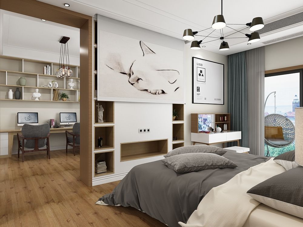 利用臥室的角落打造一個衣帽間,是一個應對大戶型臥室的不錯方法。衣帽間分區更多,功能更全,特別是對衣物比較多的家庭來說,這實在是一個最好不過的選擇。打造衣帽間的時候,一定要注意風格與臥室整體風格的一致性,這樣才能保證美觀。