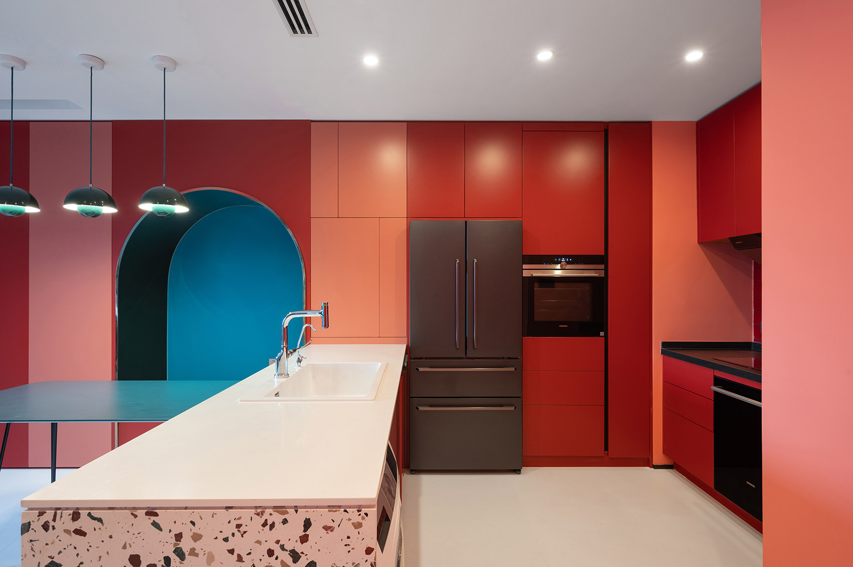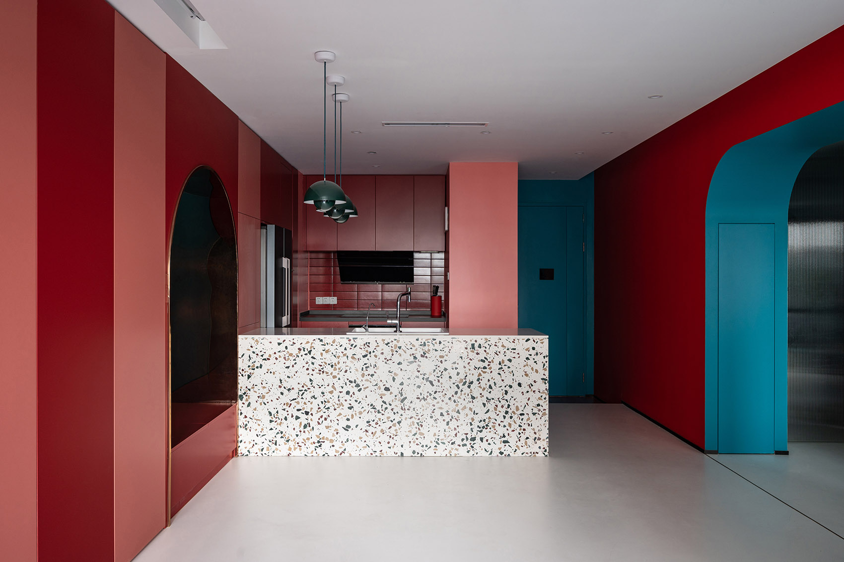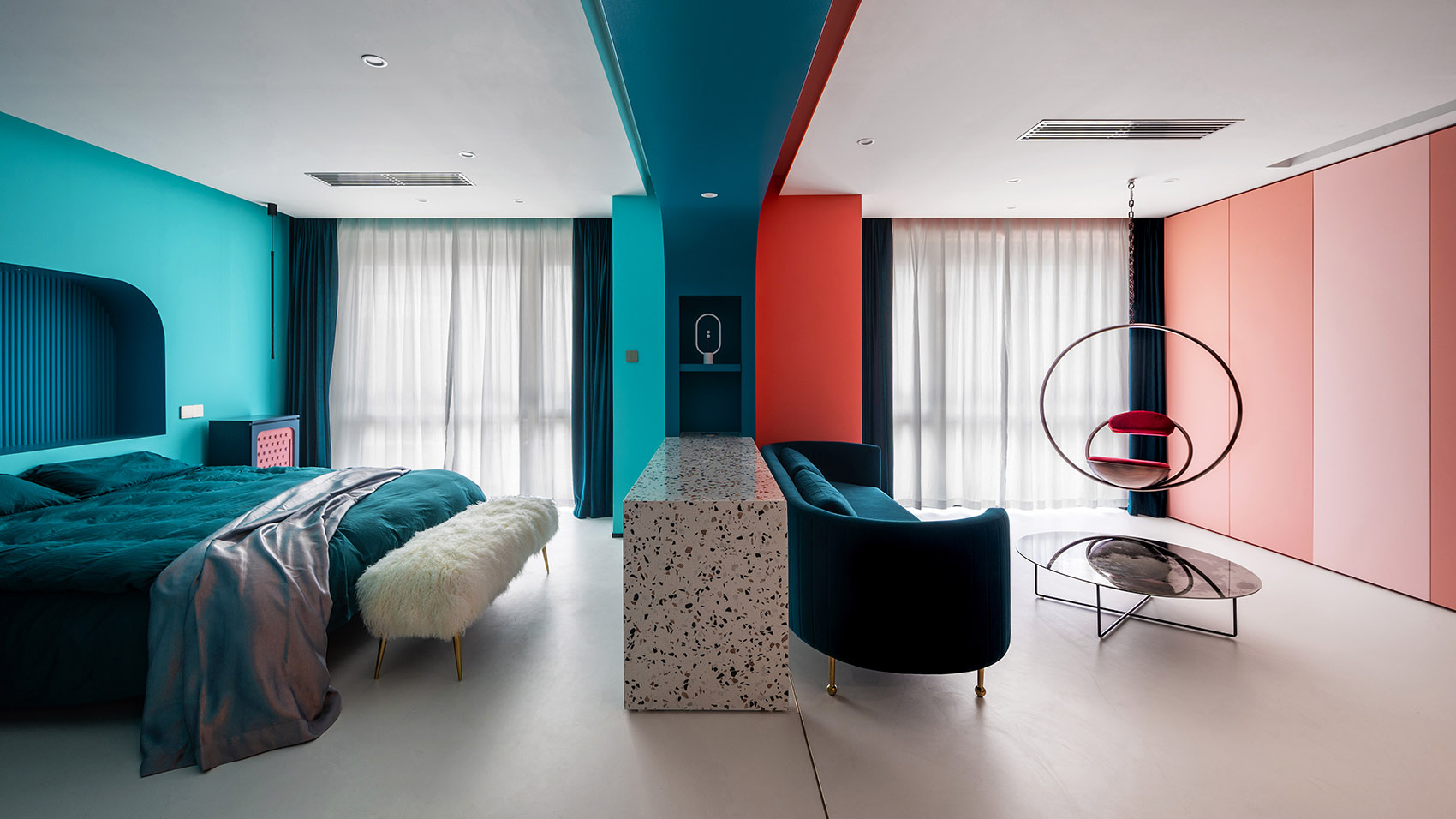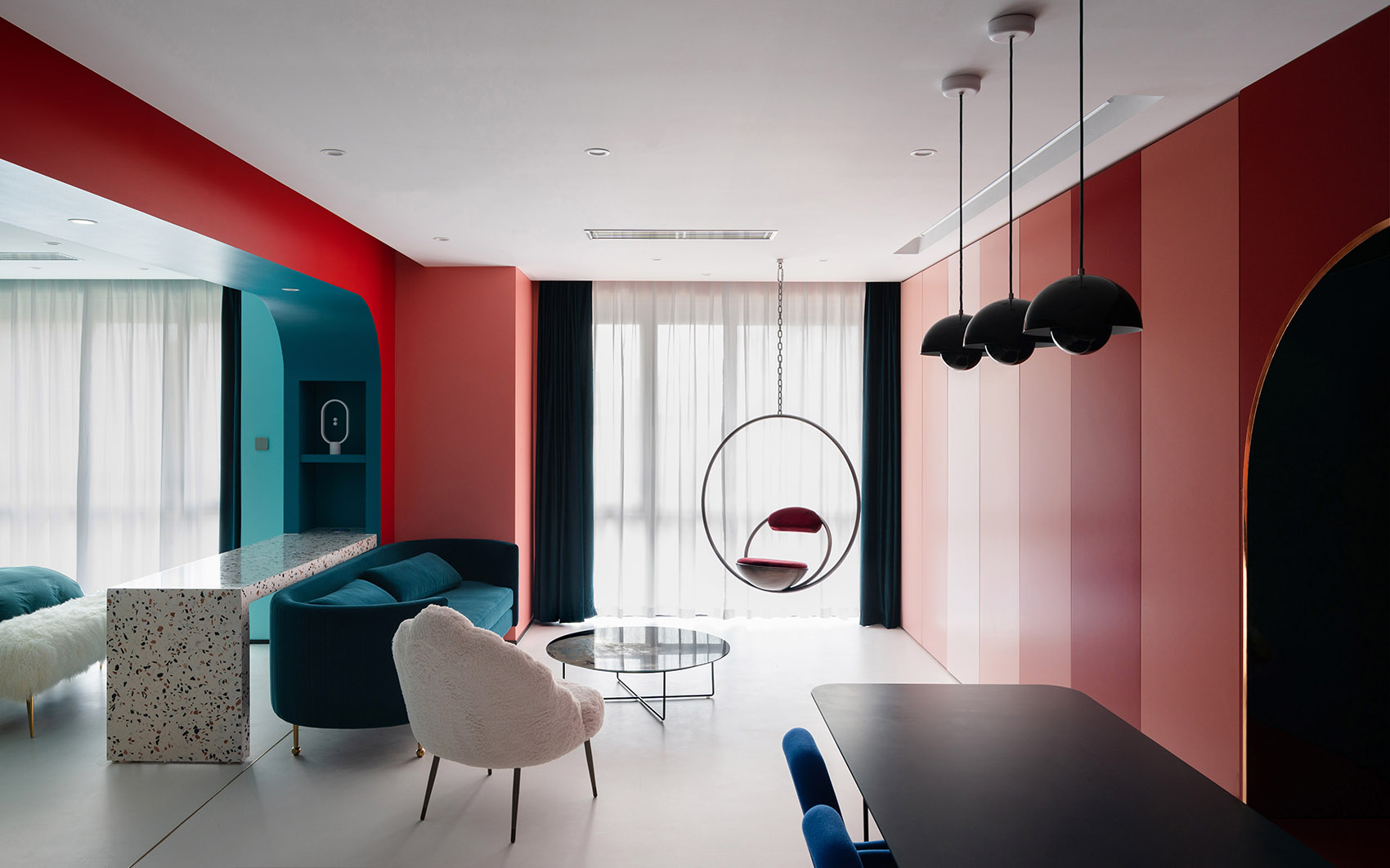 整個空間采用冷暖兩種色系,曲線的造型處理,在滿足功能需要的同時增加使用者不同的體驗感,與業主對色彩的喜好相符。