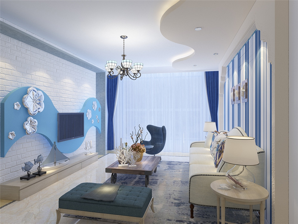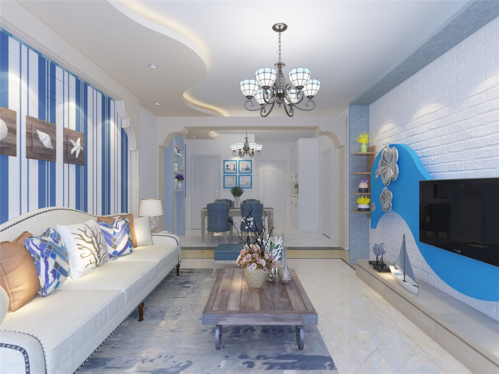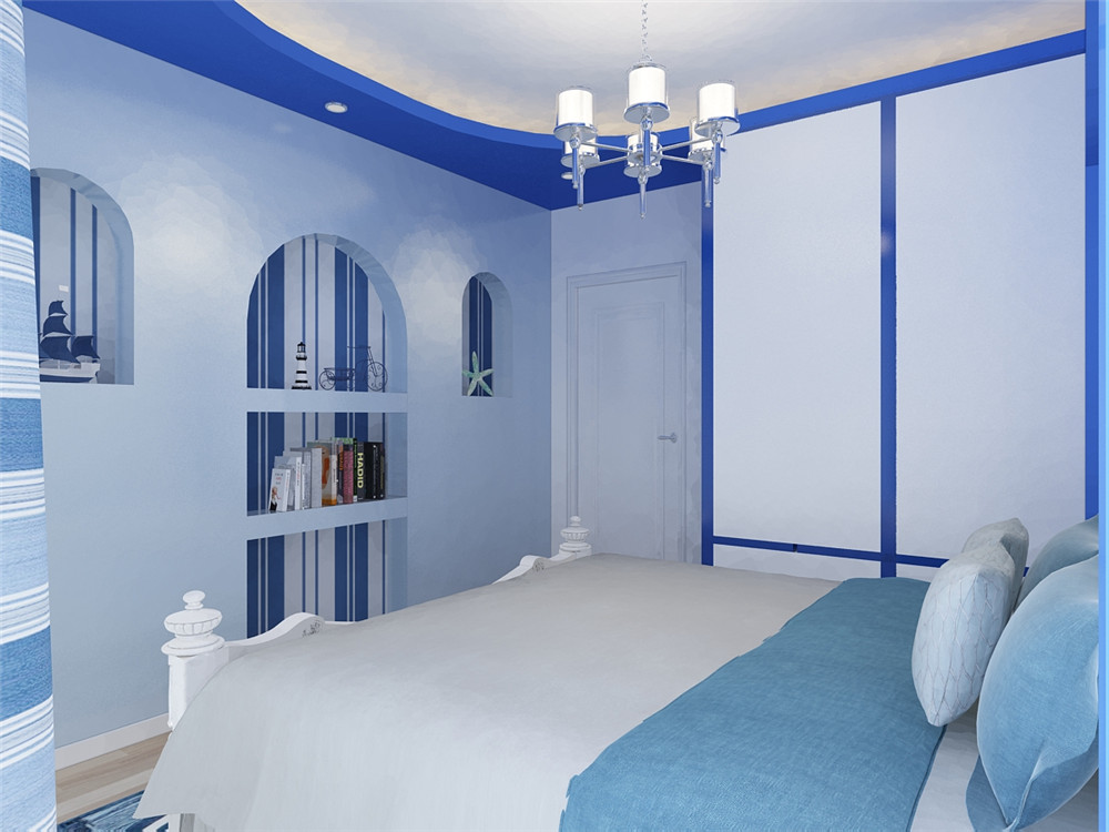 這一套地中海風格的案例,有一種在希臘海邊小鎮度假的感覺。以藍白色為主,融入了海浪的元素,自由浪漫,很有格調。