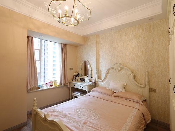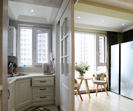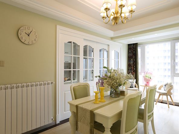 歐式風格的典雅和北歐風的清新融合在一起,相得益彰,配色也是相當舒適,視覺上很是和諧。