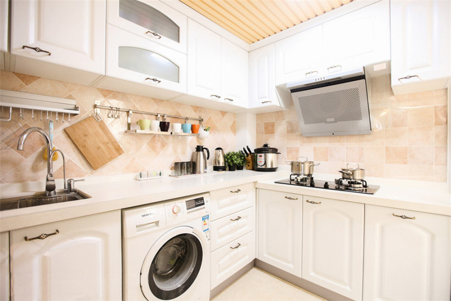 明明是最簡答的白色,在設計師的巧妙安排下,卻一點不顯得冰冷,反而十分溫馨。廚房的功能性很強,內嵌式的家電節約了空間,不會顯得擁擠。