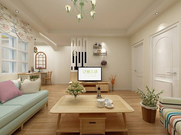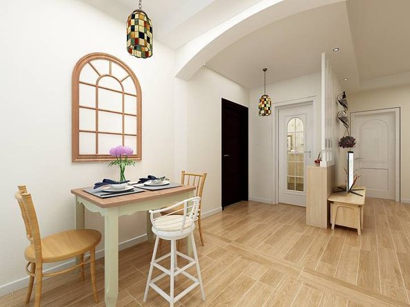 這套田園風格的二居室,在設計上有很多巧思。比如入戶天花板上的弧線設計,讓整個空間靈動不古板,層次感豐富了不少。