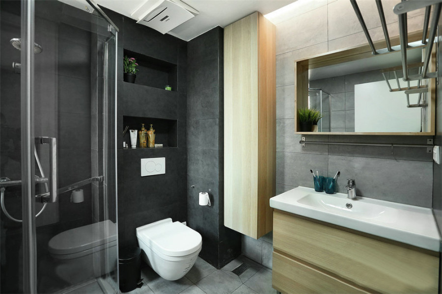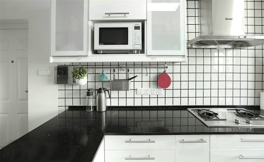 廚房用了黑線(xiàn)白格子的瓷磚,白色讓整個(gè)廚房看起來(lái)更明亮,黑線(xiàn)條可以增加層次感。格子也是北歐風(fēng)常見(jiàn)元素之一。