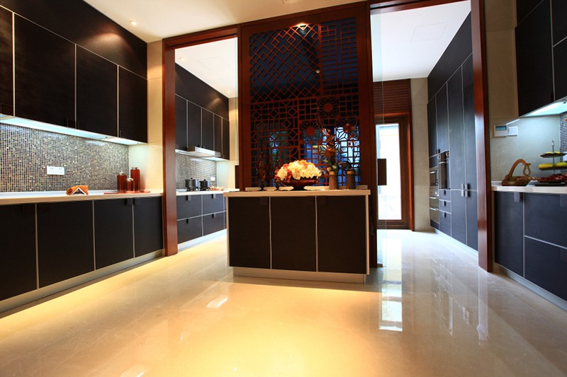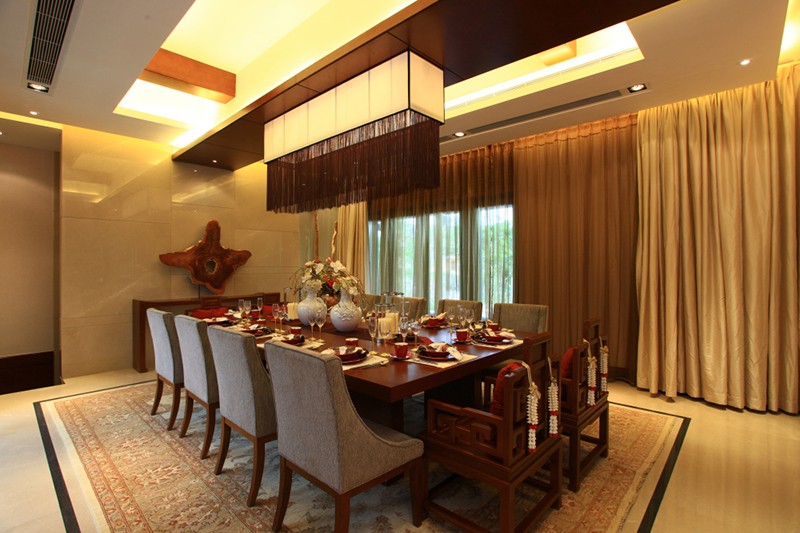 寬闊的餐廳和長長的餐桌,滿足多人同時用餐的需求。深色為主,穩重與華麗并存。