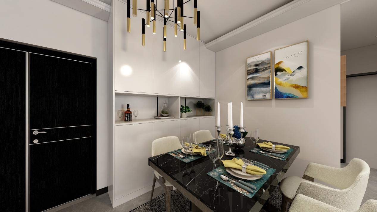 白色家具增加活躍度,黑色使整個空間更為穩重,金色點綴整個空間增加高貴的色彩。