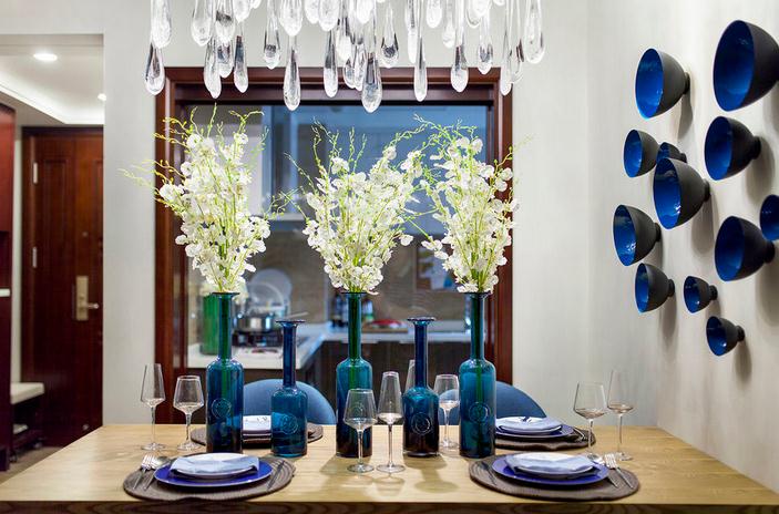 餐廳的墻面裝飾很有意思,深藍色的小碗既貼合整體的風(fēng)格,也符合餐廳的主題。