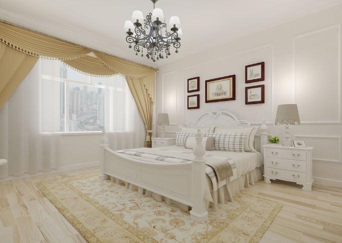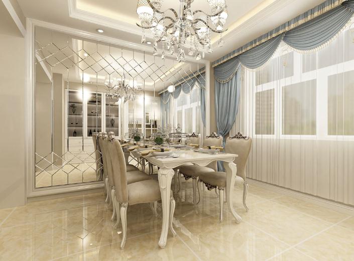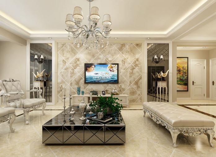 白色的歐式風格有一種高貴典雅的感覺,客廳看起來十分開闊明亮,家具的制作也相當精美。