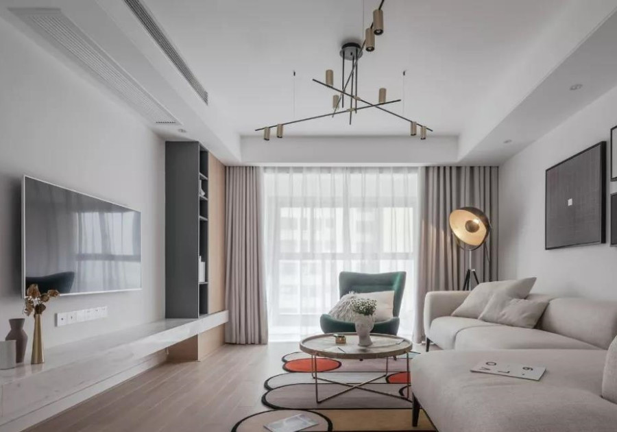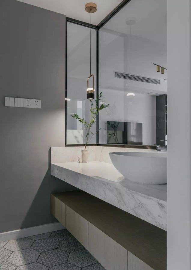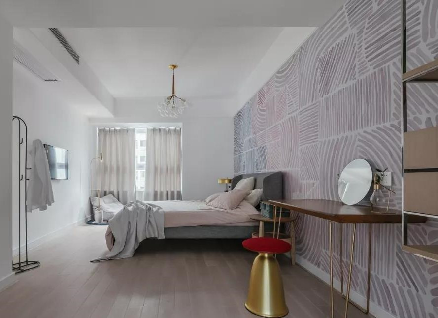 為了讓臥室看起來不會太單調,設計師用藍粉色設計了一面獨特的背景墻,非常抓人眼球。