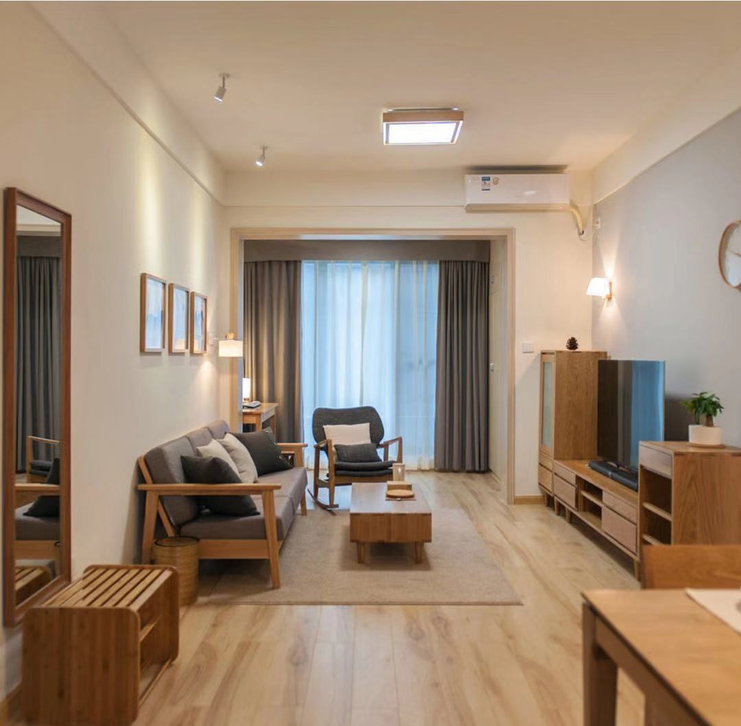整個房屋都是很濃重的原木氣息,清新又自然。純色和原木的搭配,時尚美觀,又有一種日式和風的典雅。
