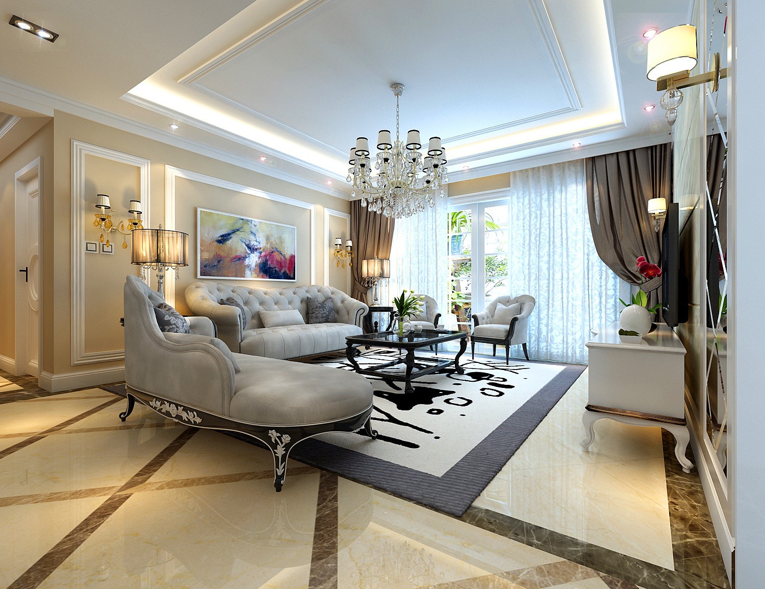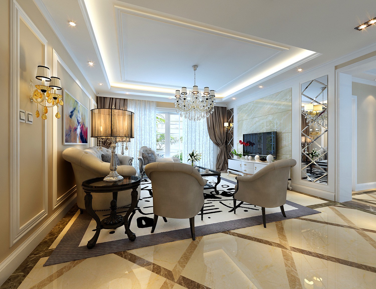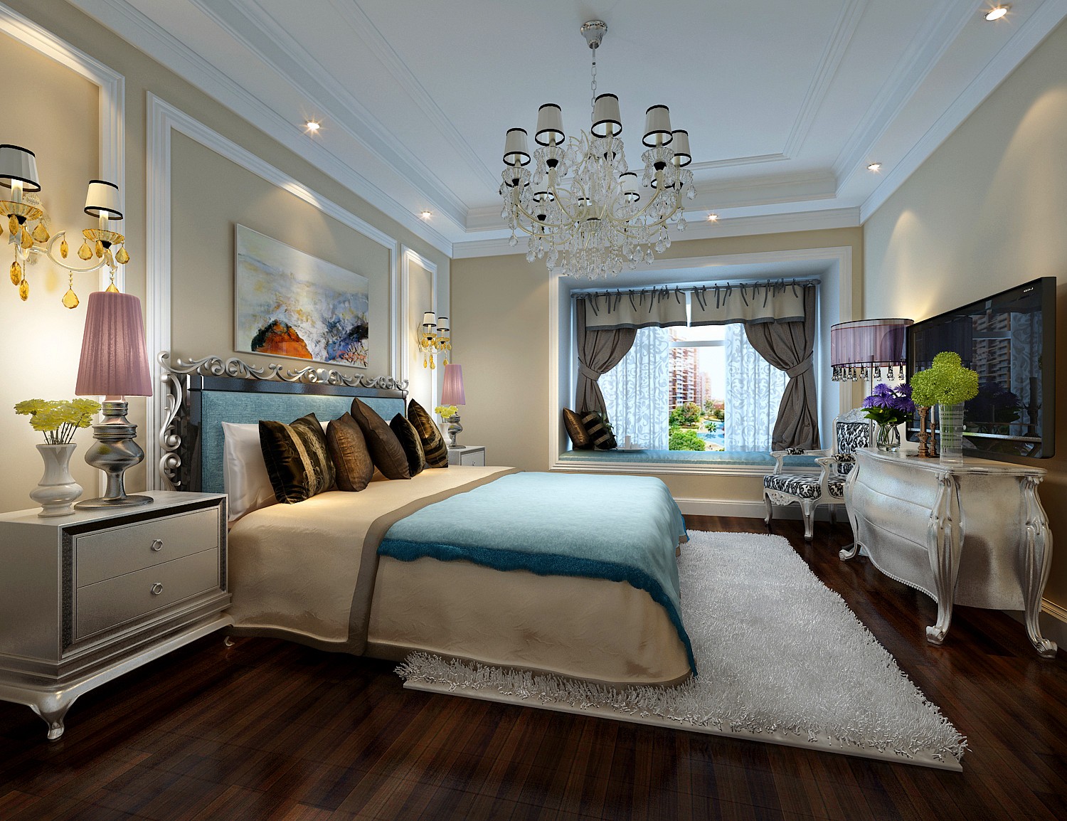 華麗的裝飾和濃墨重彩的墻畫,打造了一種歐洲皇宮的華貴,適合喜歡氣派裝飾的業(yè)主。