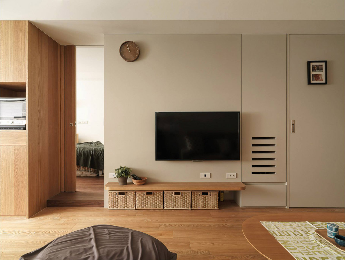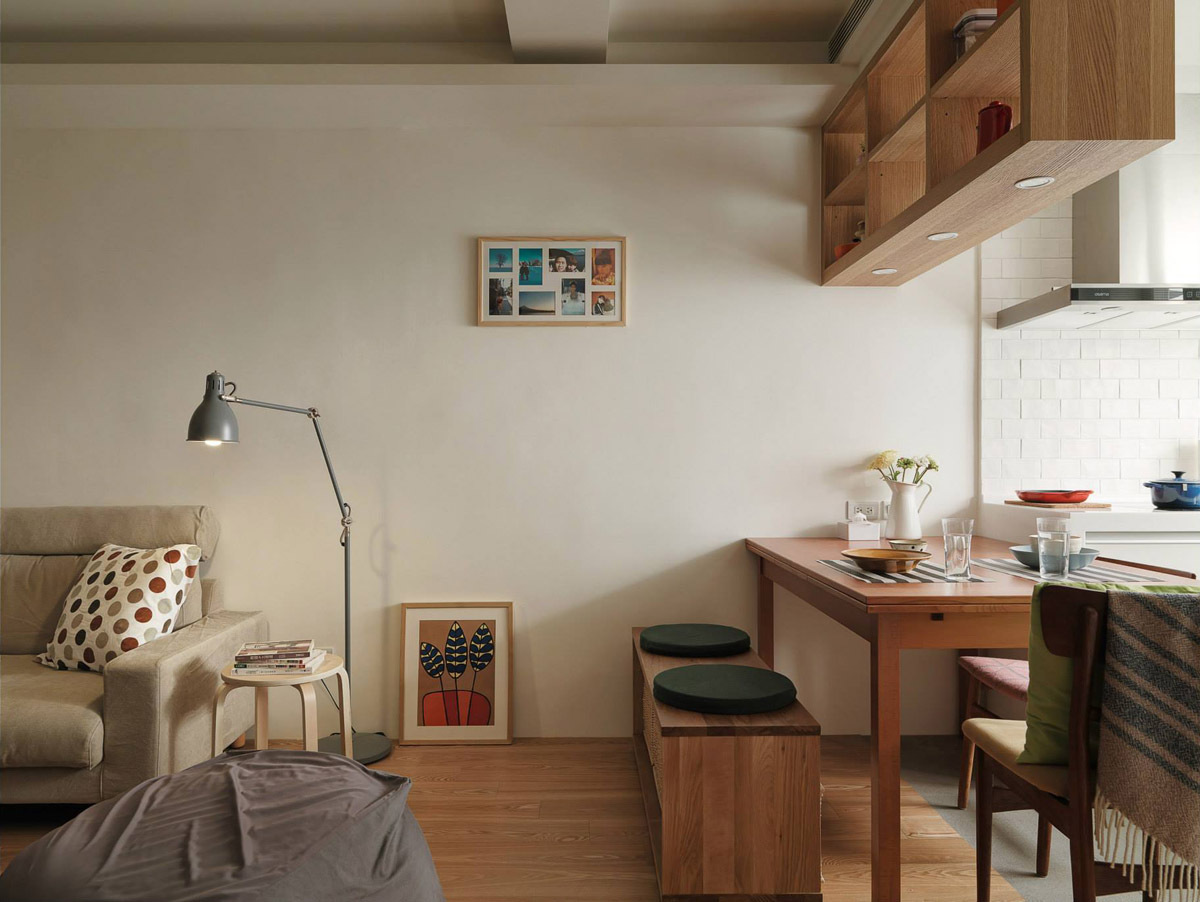 明明只是43平米的一居室,卻被設(shè)計(jì)師做出了大戶型的感覺,白色的墻面雖然簡(jiǎn)單,卻有提亮空間、開闊視野的效果。原木質(zhì)地的家具打造出了日式風(fēng)格的優(yōu)雅與靜謐。把洗衣機(jī)、冰箱等大型家居內(nèi)嵌裝進(jìn)柜子里,可以讓整個(gè)空間看起來更簡(jiǎn)潔也更美觀。