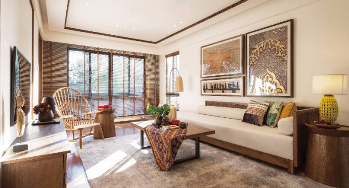 東南亞風格常用竹、藤等天然的材料做裝飾,局部用有質感的布料做搭配,再加上燈光的變化,打造出一種穩重、豪華的感覺。這一套東南亞風格沒有用太多花哨的裝飾,所以能夠給人帶來一種清新自然的感覺,風格濃烈的同時卻不顯得雜亂,這也正是東南亞風格能流行起來的原因之一。