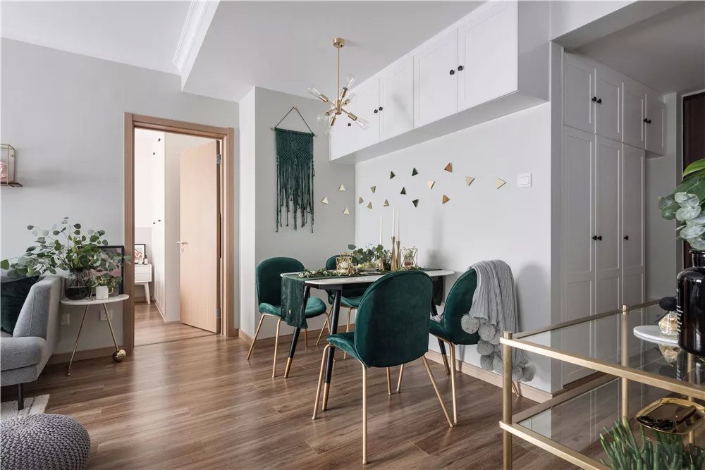 看到這套案例才知道,原來(lái)綠植的作用那么大。藍(lán)色和綠色的搭配清新又自然,隨處可見(jiàn)的綠植既有裝飾作用,也有凈化空氣的功效。金色的裝飾,又體現(xiàn)出了輕奢的質(zhì)感,北歐風(fēng)不止有放松和自然,還有輕奢和格調(diào)。整個(gè)房屋所使用的的柜子都是定制的,效果剛剛好。