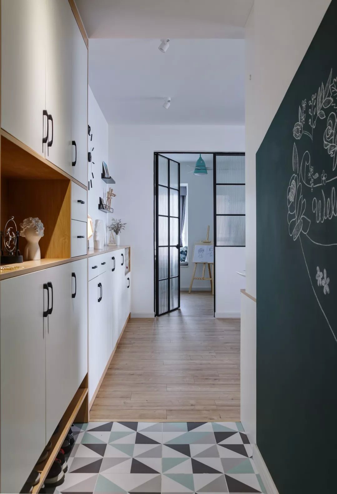 來裝修的業主是一位年輕的姑娘,她說她和她老公剛領證,這是他們倆人的婚房,所以希望設計上不要太沉悶,盡量輕快一些。這套北歐風的二居室所使用的裝飾都很簡單,但是卻做到了以簡勝繁,以少勝多的效果。它既有北歐風簡潔實用的特色,也有一絲浪漫優雅,每一處小設計都別出心裁。