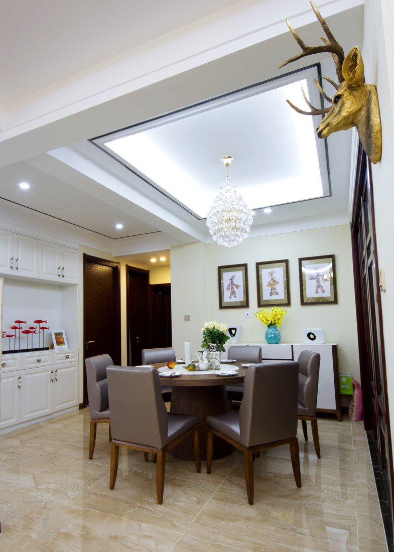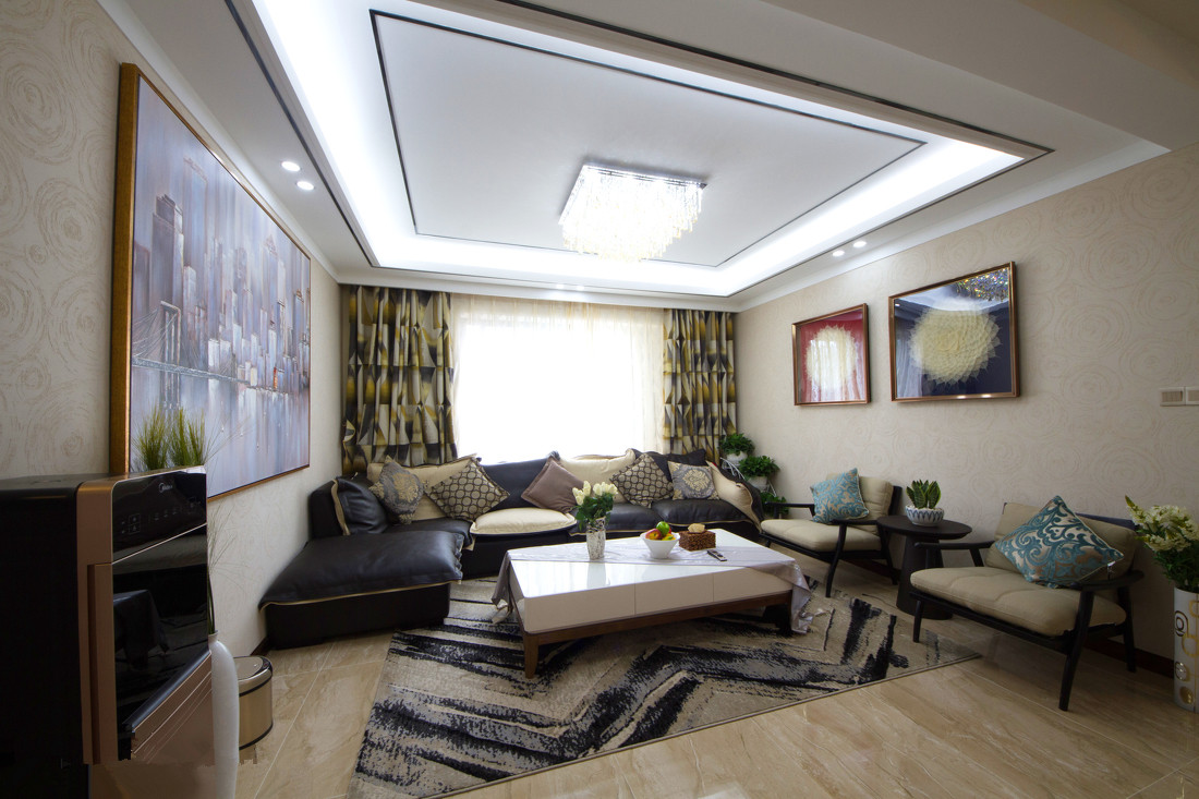 后現代風格成熟穩重,最擅長雜糅其他風格的特色,融合其他風格的優勢,蘊含著一種“海納百川”的文化底蘊。所以你在這套三居室里,能看到中式風的書房,也能看到現代風的客廳。客廳和書房之間,用了一面半人高的墻做隔斷,可以說是十分突破與創新了。