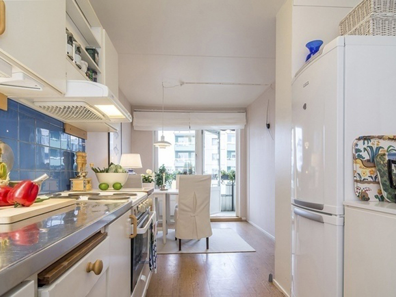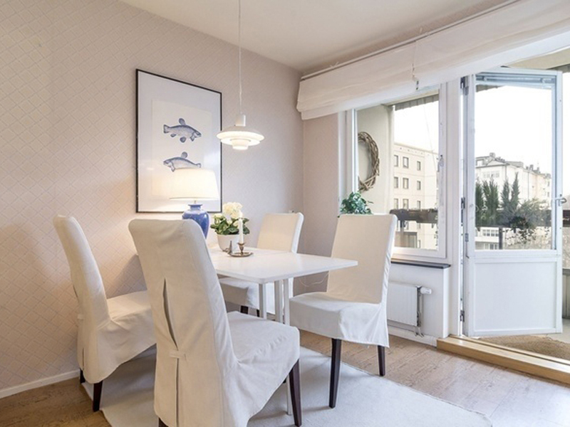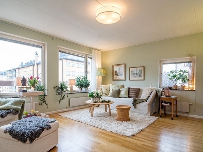 因為戶型自帶頂層陽臺的原因,所以這套田園風格感覺上更為接近自然,仿佛一推門就能感受到院子里的鳥語花香。房子使用的主色調是最為素雅的白色,淺綠色刷滿了客廳的四面墻,搭配上精心栽種的綠植,田園風格的閑適感一下子就展現出來了。