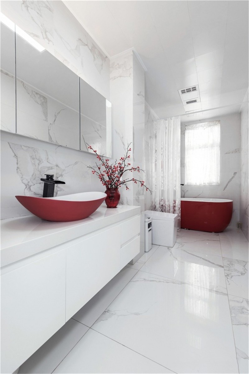 這套新中式風(fēng)格讓原本面積就大的戶(hù)型,變得更為寬敞明亮,陽(yáng)臺(tái)和客廳之間,用景墻做隔斷,就像是把蘇州園林換了一種方式搬回了家中。雖然整個(gè)房屋的主色調(diào)是最簡(jiǎn)單的白色,但是一點(diǎn)都不會(huì)單調(diào),反而有一種水墨畫(huà)的感覺(jué)。
