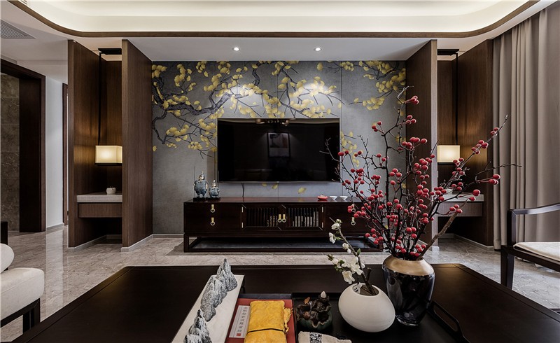 南寧廣匯名都126平米中式風格裝修案例效果圖