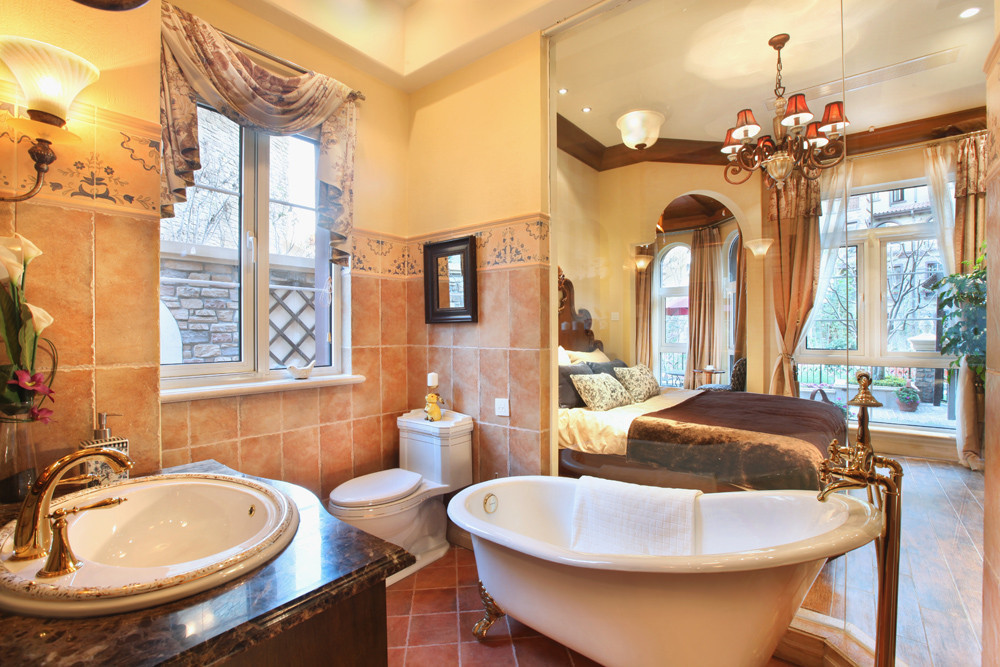 這套東南亞風格的三居室,有很多創新的設計。比如客廳里的茶幾不是常見的茶幾樣式,而是一面民族風十足的大鼓,比如臥室里的衛生間用玻璃墻作為隔斷,這都是家居裝修中比較少出現的元素,但是卻被設計師巧妙地用在了這套東南亞風格的案例中。