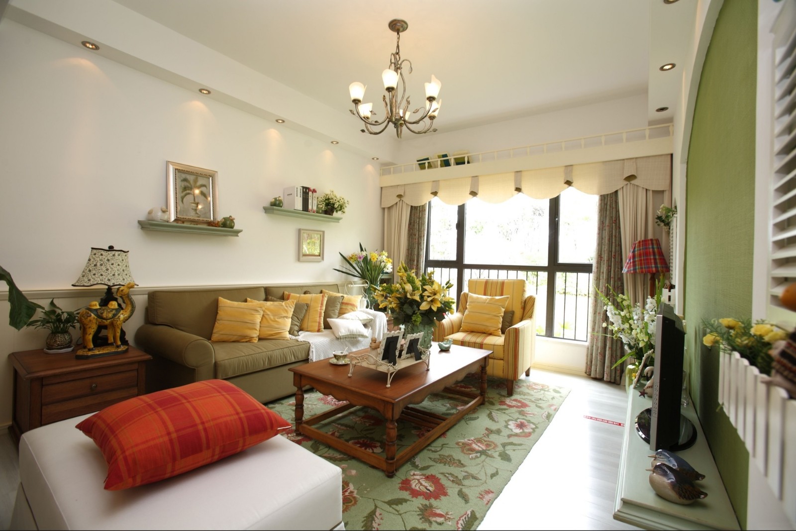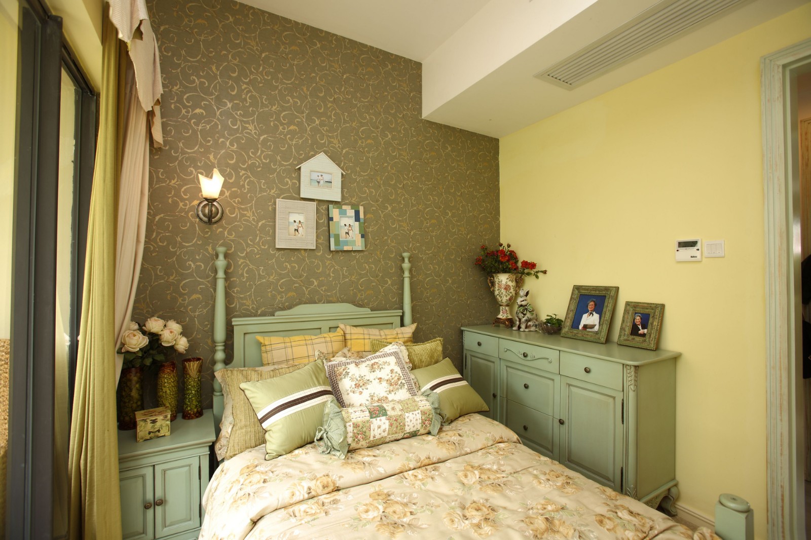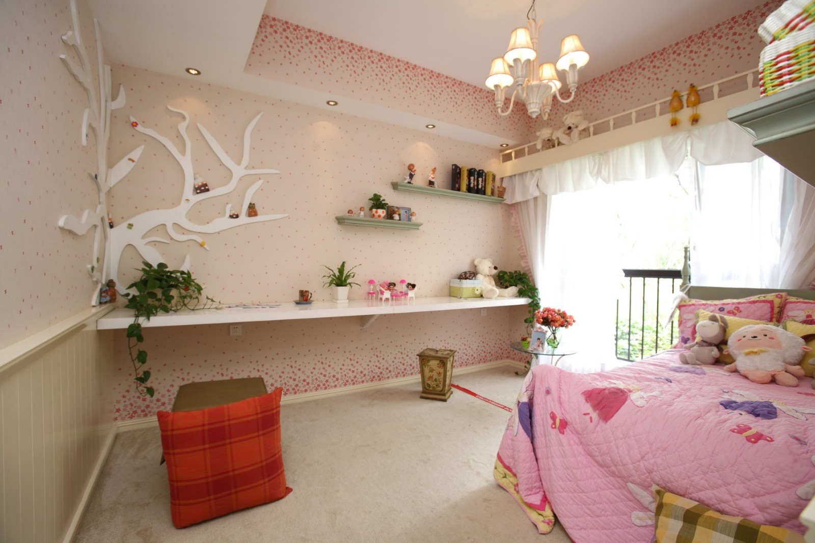 田園風格的特色在這套三居室里體現得十分明顯,碎花工藝的廣泛運用,給客廳和臥室增添了許多清新的氛圍。女兒房用的是粉色的設計,加長型的書桌不會占用太多的空間,可供使用的空間也很多。