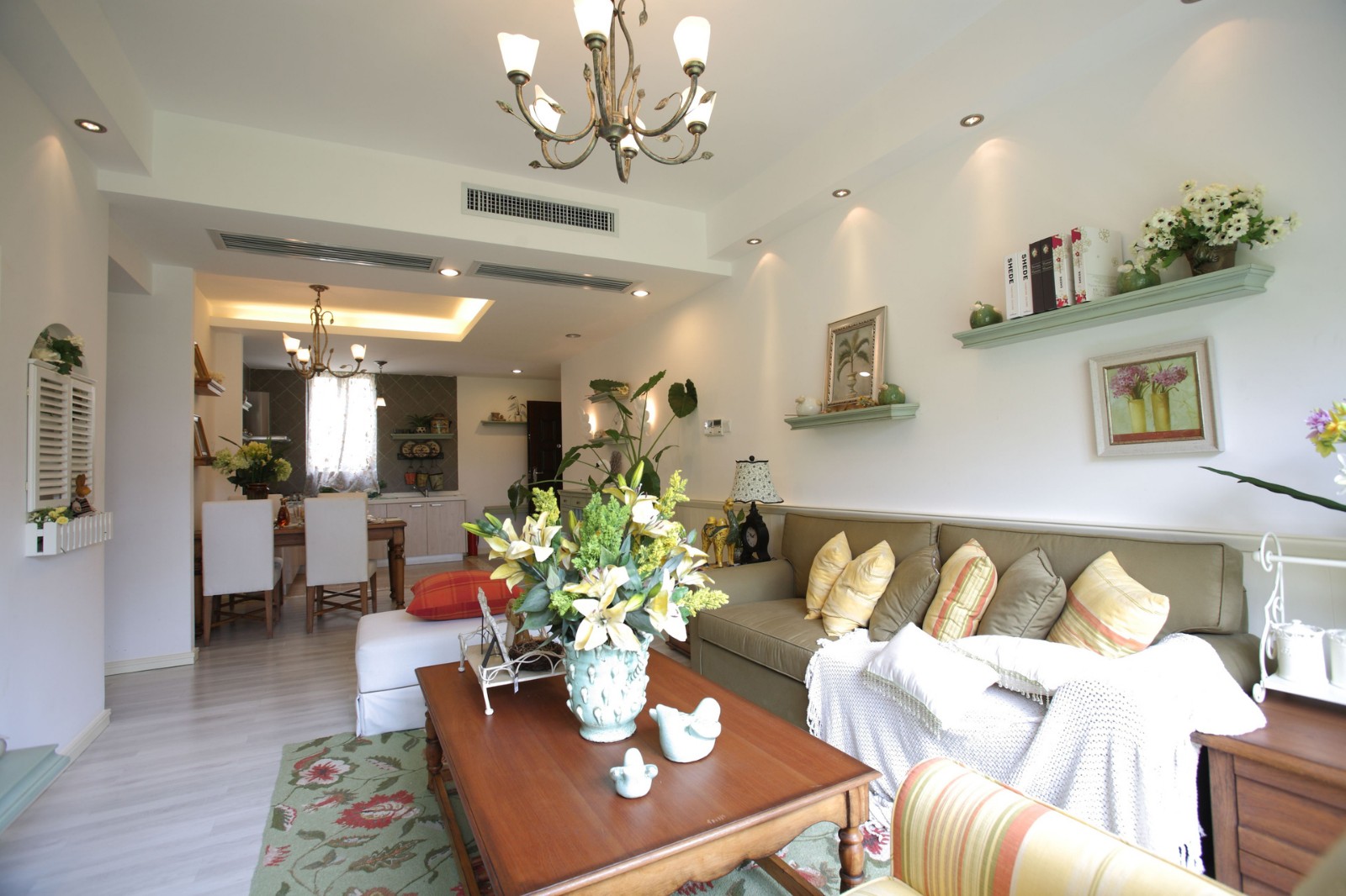 南寧陽光尚都81平米田園風格裝修案例效果圖