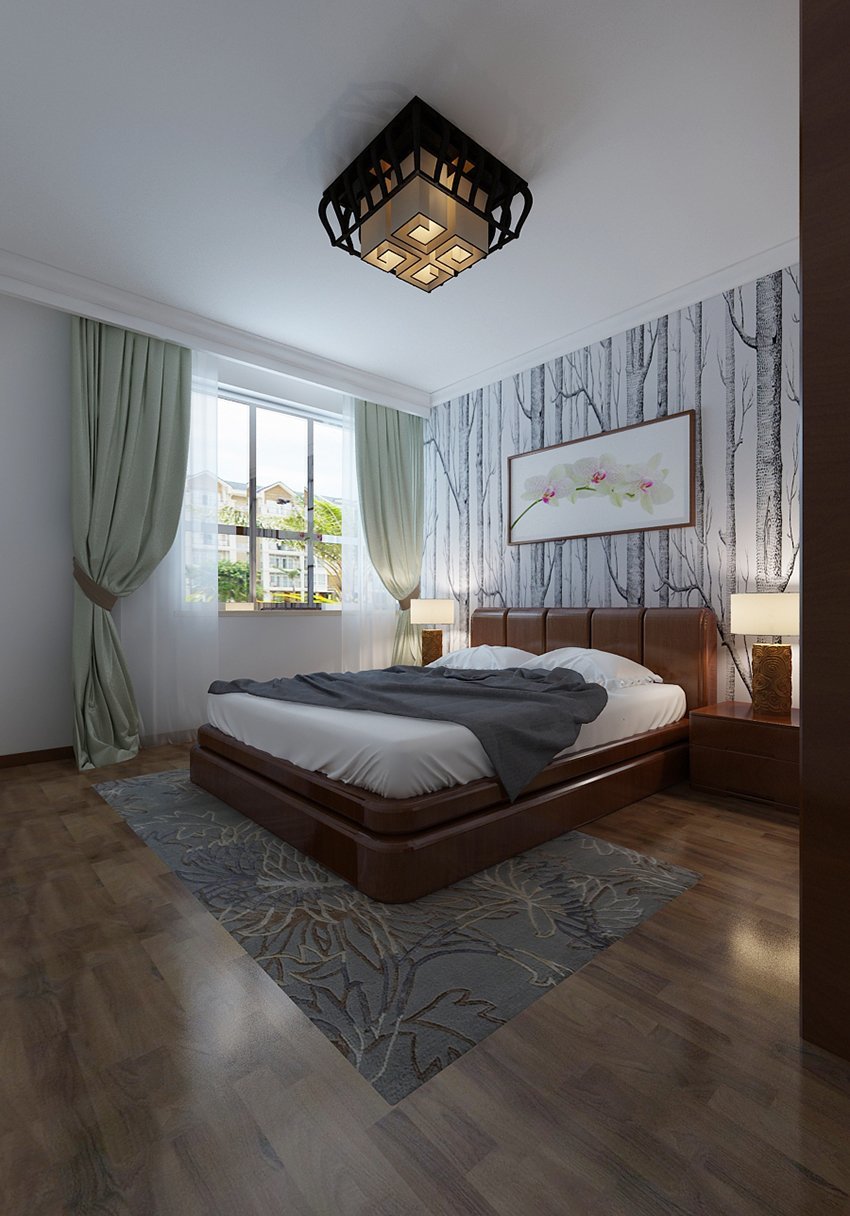 南寧恒大華府88平米中式風格裝修案例效果圖