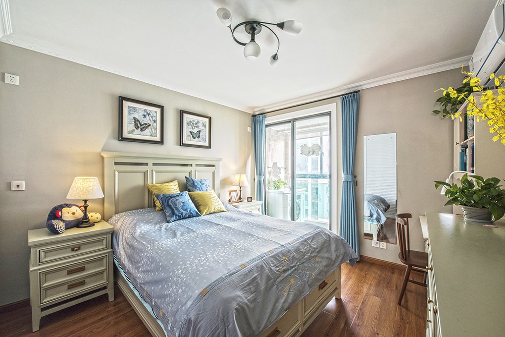 業主夫妻和女兒一起居住,所以一套二居室的小戶型完全足夠了,清新、自然、舒適、愉快的氛圍很適合小朋友的成長。因為客廳位置并不太足夠,所以沒有擺放沙發電視之類的家具,簡單的飄窗就是最適合的休閑區。