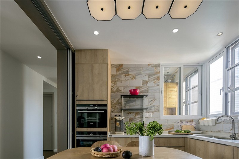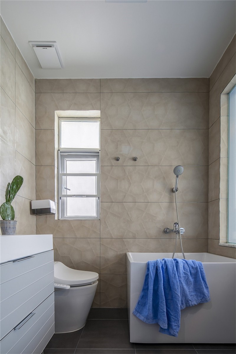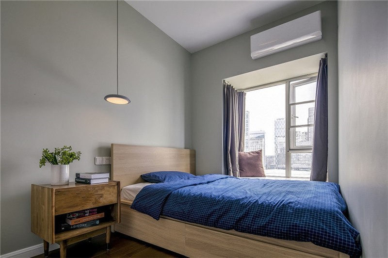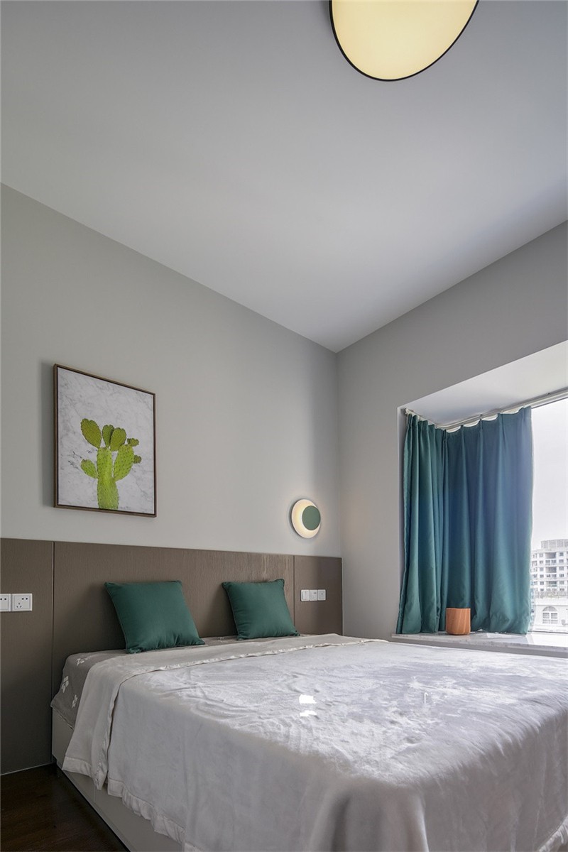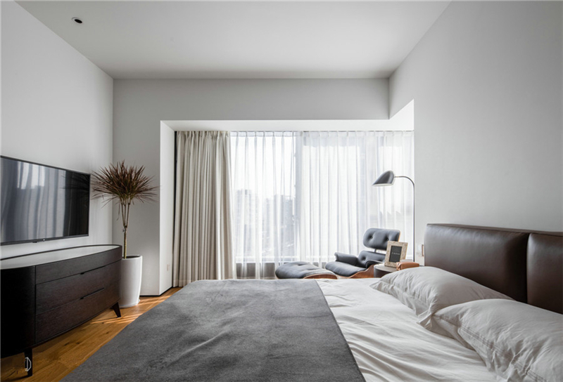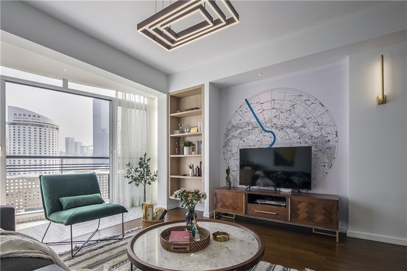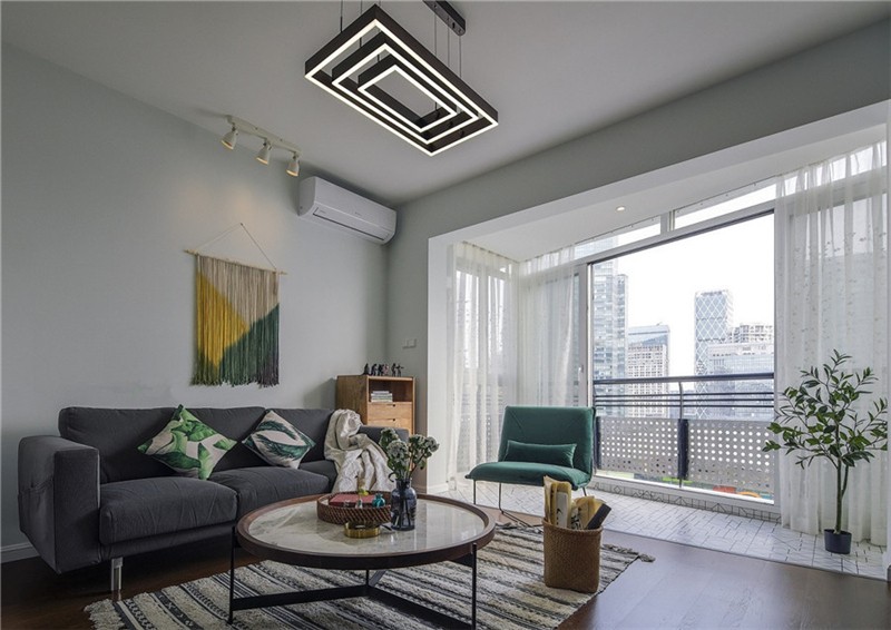 業主夫妻追求簡潔與時尚的裝修,設計師用白色、灰色和木色作為客廳的主色調,客廳和陽臺之間也沒有設置隔斷,所以光線能夠輕而易舉地照進客廳,整個客廳看起來十分的寬敞、明亮,適當的綠植讓人看起來心曠神怡,一天的疲勞都消除了。