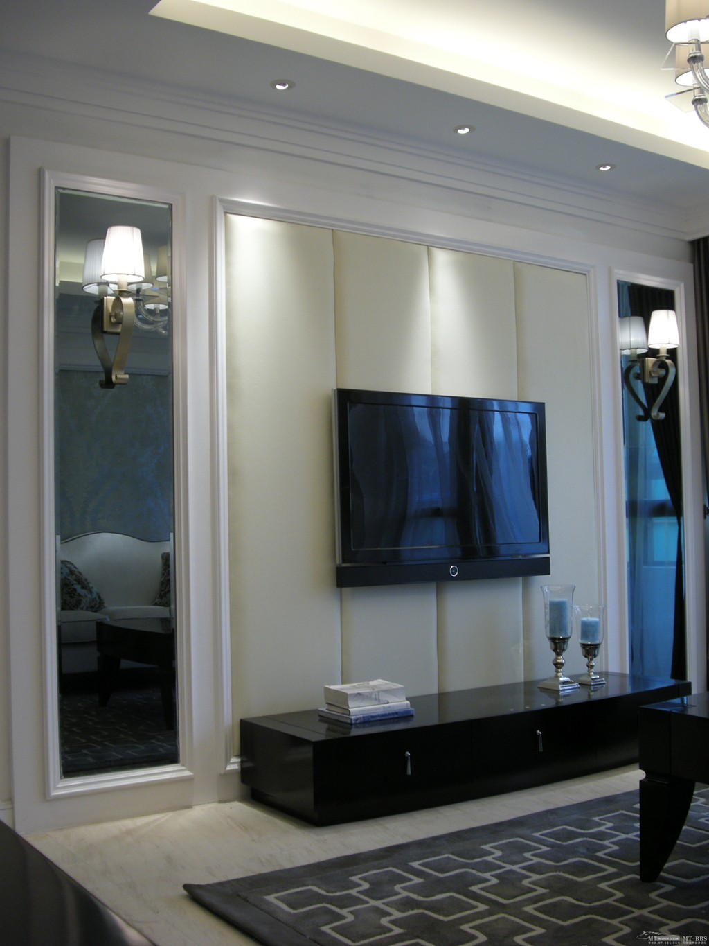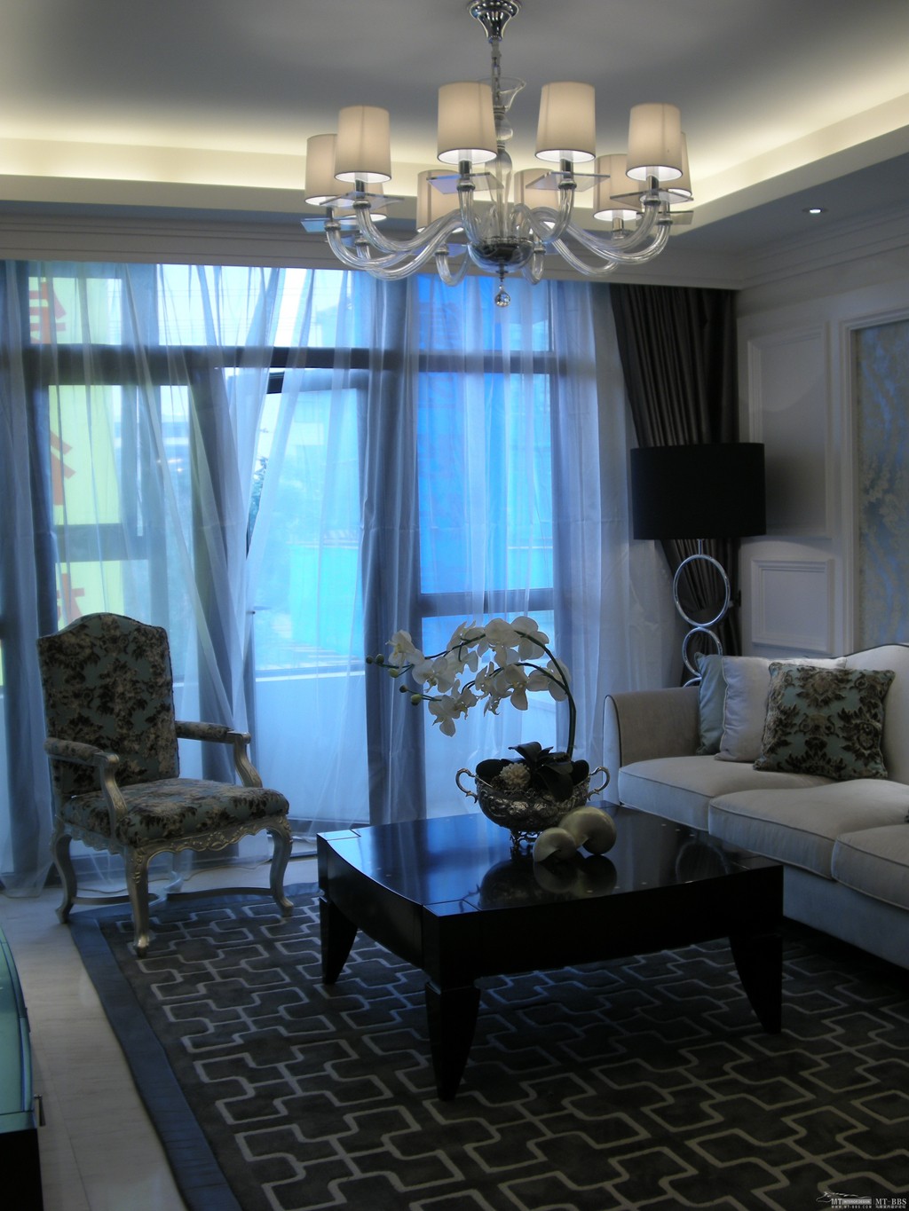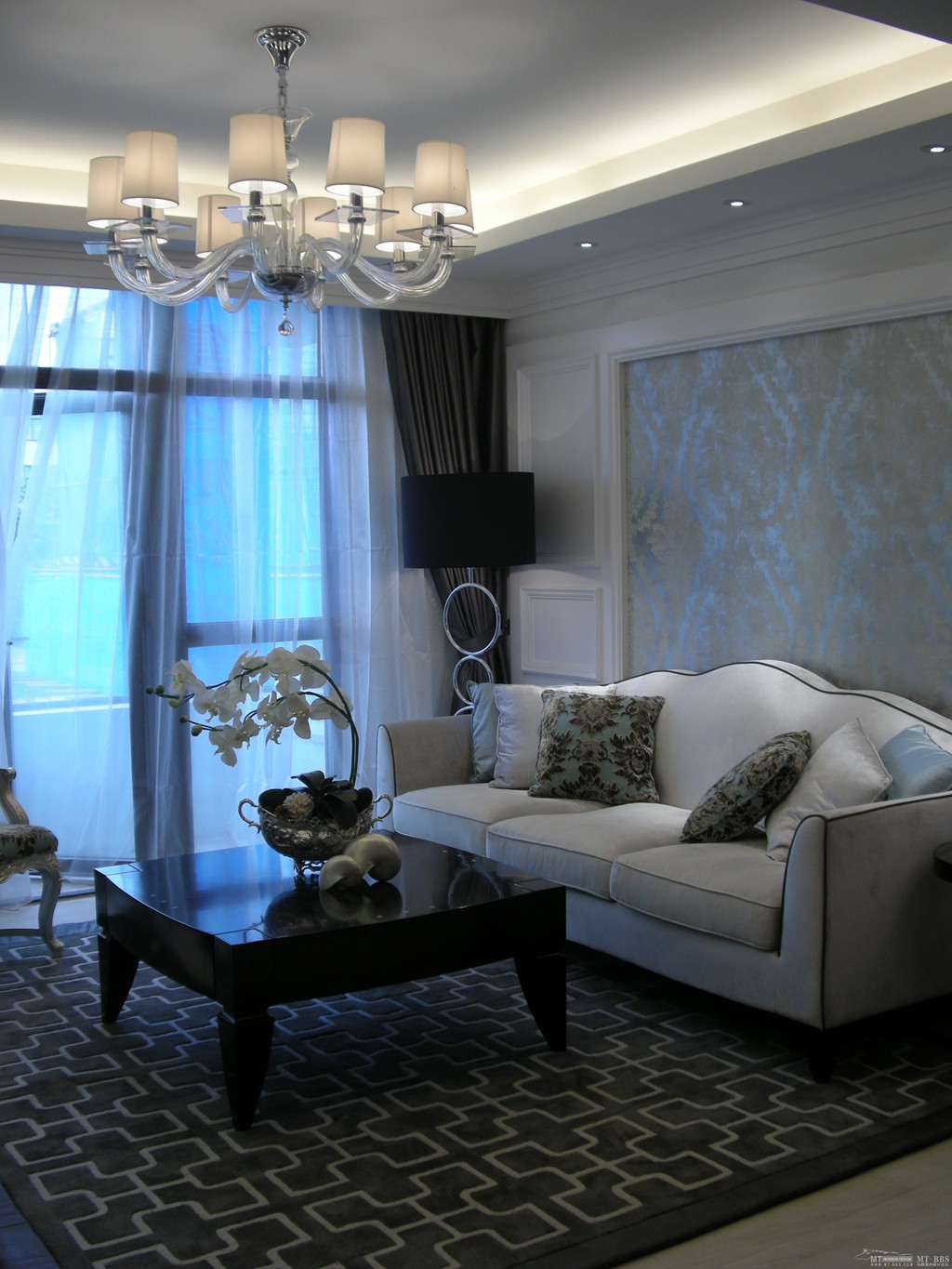 古典家居有著濃重的歷史寄托感,而新古典則是將古典的韻味與現代的氣息結合起來的經典設計。客廳以經典的黑白兩色為主,精致的吊燈為整個家增添別樣的風味,吊燈藏燈的設計,不僅是為了增加光源,更是為了打造客廳的層次感。