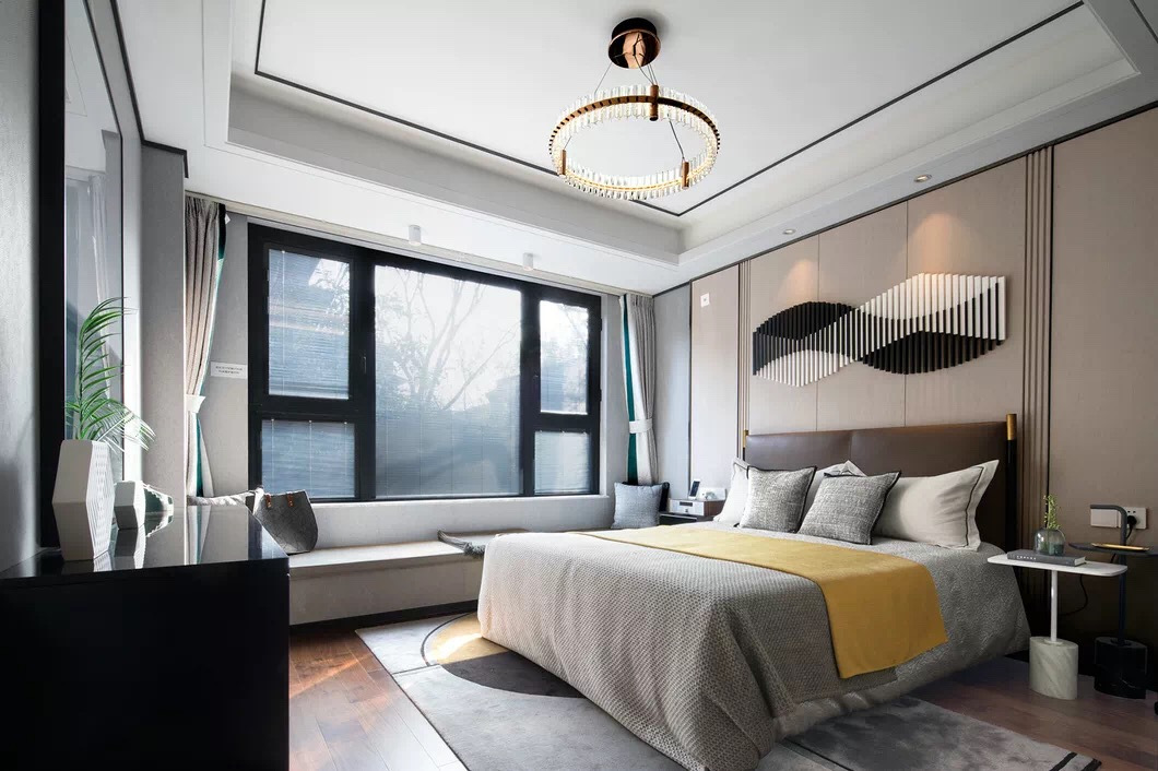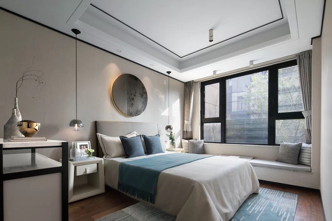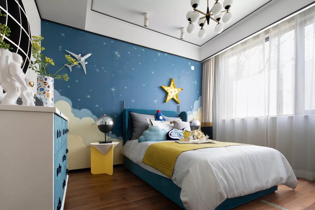 這套中式風格沒有使用過多的中式元素進行裝飾,它更注重打造中式禪意。為了保持家居風格的統一性,臥室的裝修方式都是差不多的,但是在兒童房的裝修上,設計師以“浩瀚星河”為主題,就像是把星空搬回到了臥室里一樣。