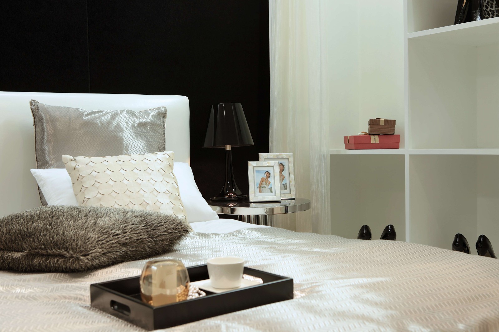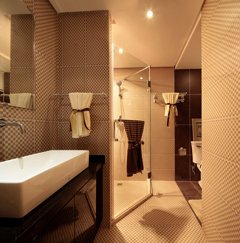 后現代風格追求時尚與新潮,多種元素混搭的效果,打造了 一種統高雅與現代新奇相結合的效果。客廳、餐廳與廚房連為一體,餐廳也相當于是客廳和廚房之間的隔斷。天花板上的鏡子設計,讓整個空間都開闊了不少。