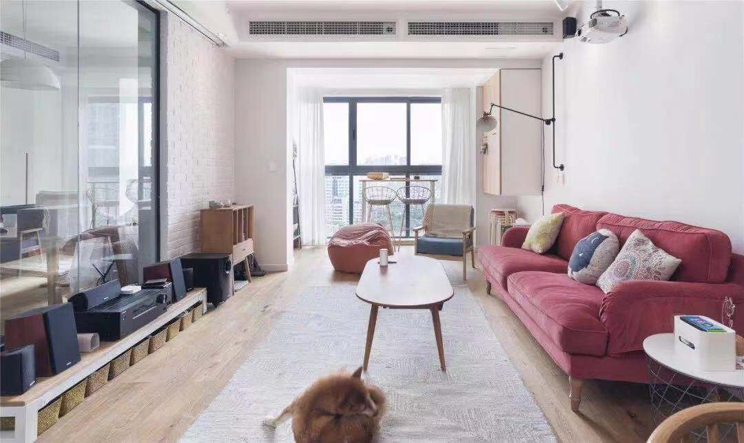 客廳沒(méi)有安裝電視機(jī),而是在天花頂藏了幕布,把陽(yáng)臺(tái)的窗簾拉上,這個(gè)客廳就能變身成小影院。臥室里是制的衣柜,用玻璃推拉門+鏡柜門取代傳統(tǒng)的木質(zhì)柜門,在視覺(jué)上可以讓空間擴(kuò)大N倍,另外床頭的一邊是梳妝臺(tái),方便女主人平時(shí)梳妝打扮。