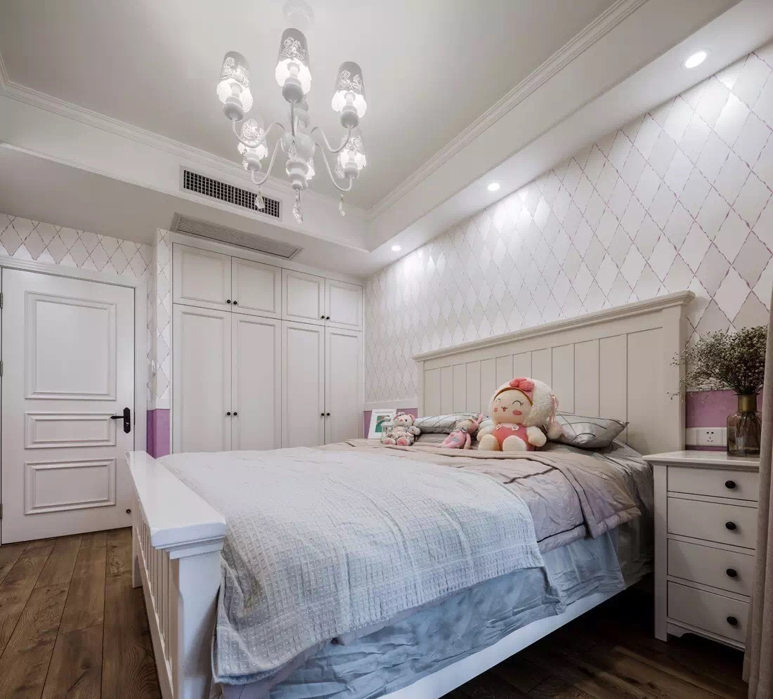 現代美式很注重輕奢風格的打造,所以你能在這套客廳或者餐廳,發現一些金屬質地的擺飾,色澤明亮,作為空間的點綴恰到好處。業主夫妻兒女雙全,所以兩間次臥分別被裝修成了兩種風格。