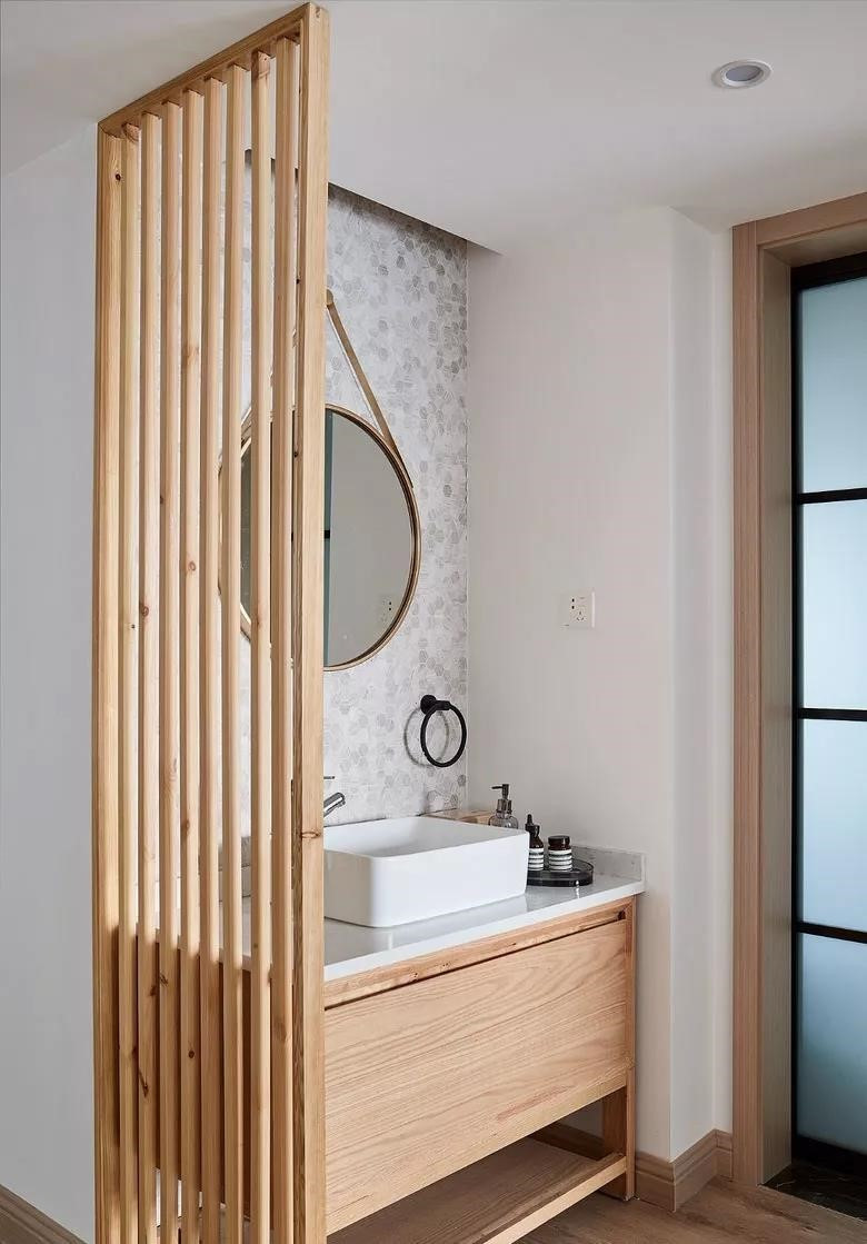 日式風總是有一種以簡勝繁,以少勝多的魔力。雖然是小戶型,但是不管是客廳、餐廳還是主臥,都不會讓人覺得擁擠,光線很是透亮。把洗手臺移出衛生間,用屏風做一個簡單的隔斷,視覺效果絕佳。這樣的日式風,喜歡原木質地的人一定不能錯過。