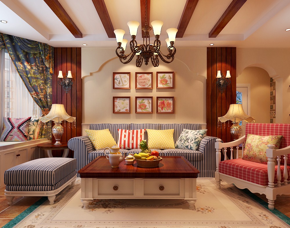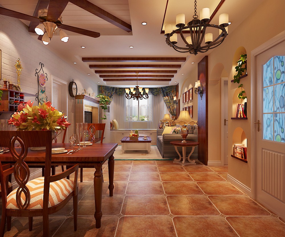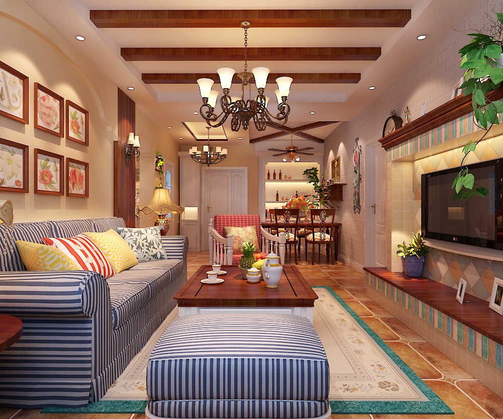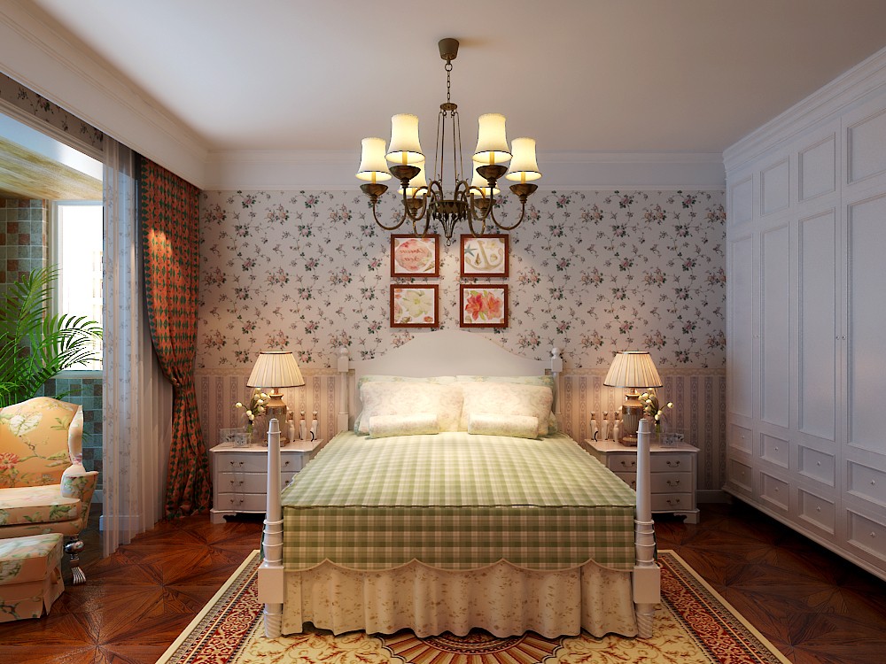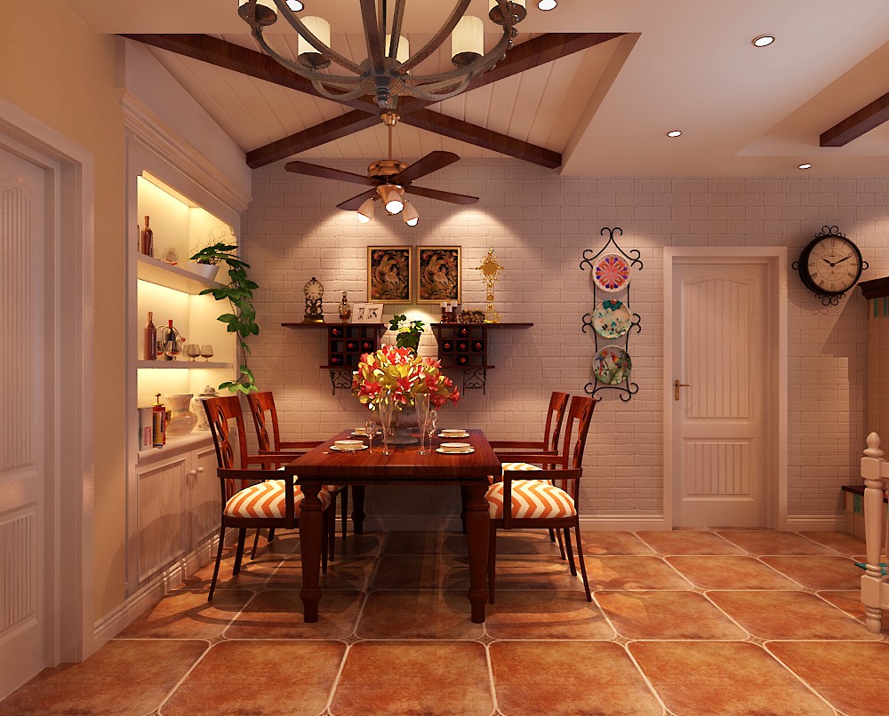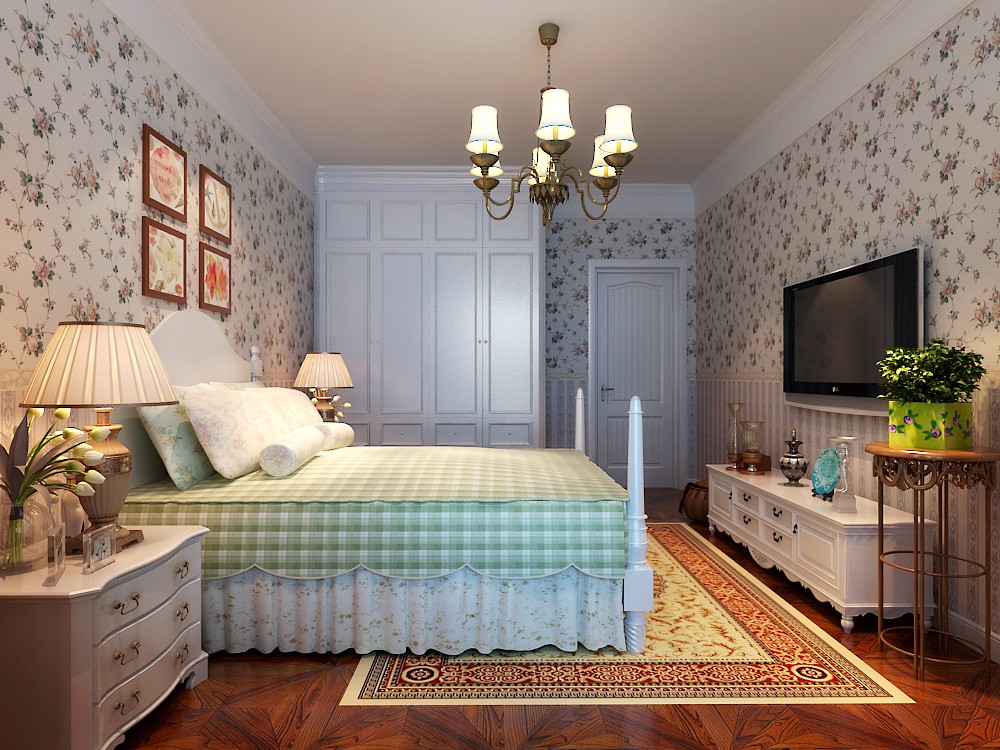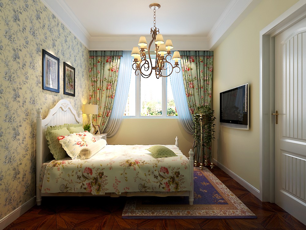南寧意洲嘉園盛景毛坯房106平米田園風格裝修案例效果圖