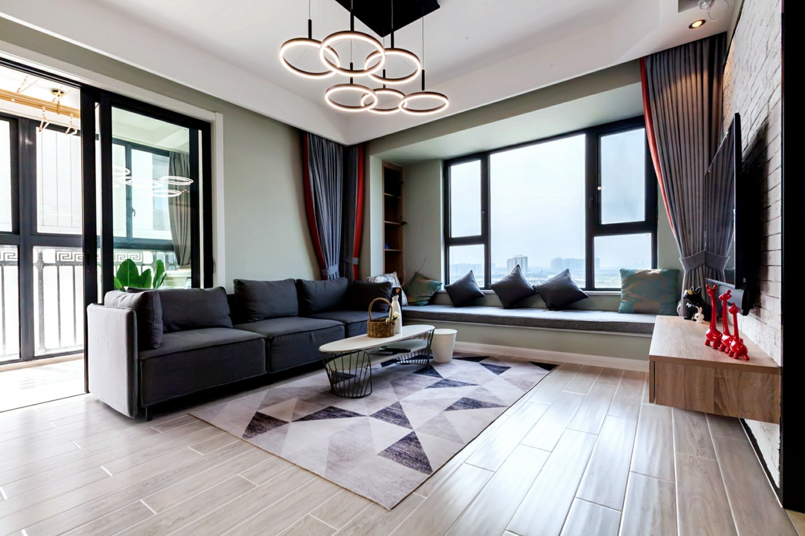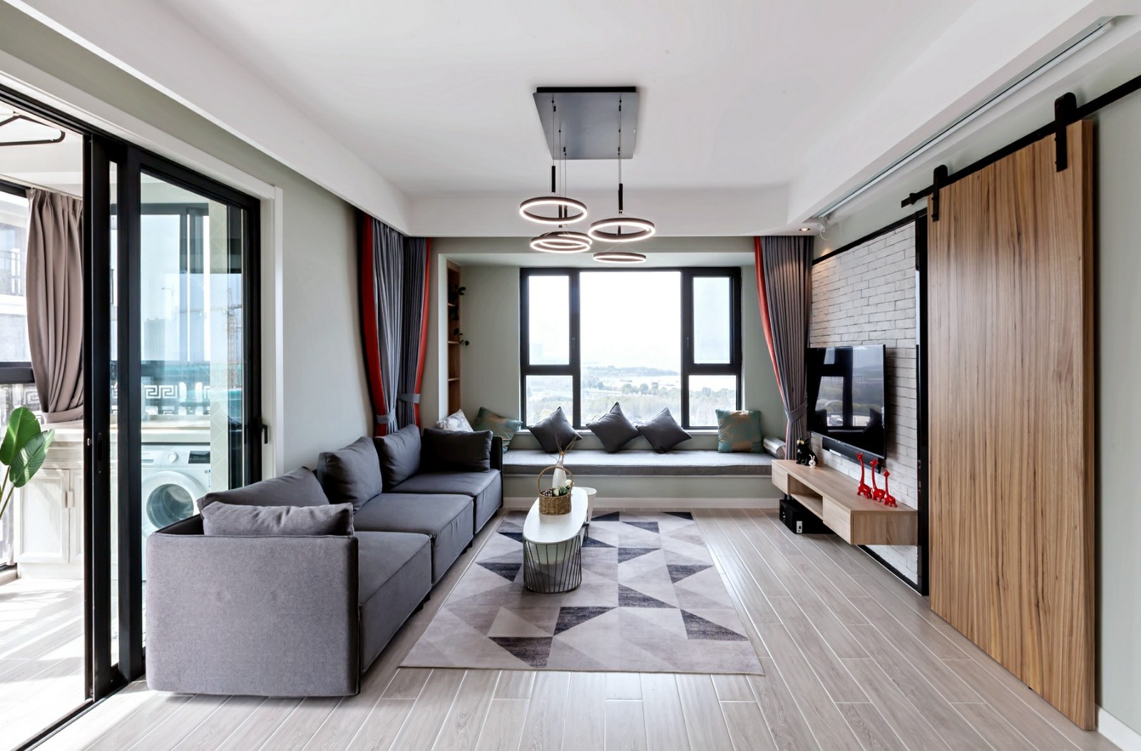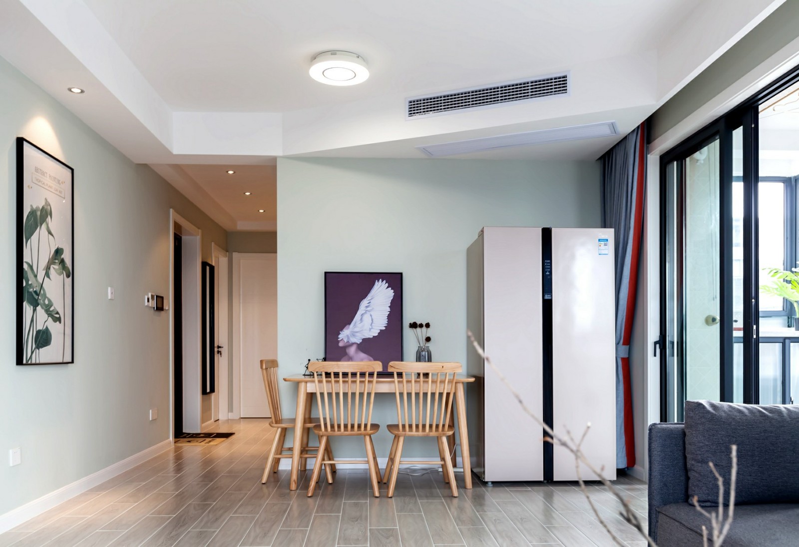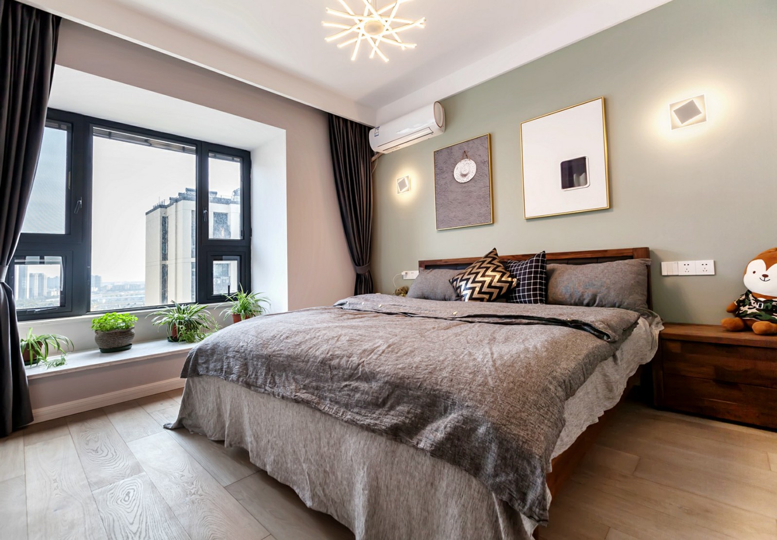 業(yè)主是一對(duì)年輕的小夫妻,喜歡簡潔明快的設(shè)計(jì),在設(shè)計(jì)師的建議下,他們選擇了北歐風(fēng)作為家裝風(fēng)格??蛷d的沙發(fā)和飄窗緊挨,就形成了一個(gè)寬闊的L型沙發(fā),來了再多的客人也能夠坐得開。臥室的背景墻是一種帶著灰調(diào)的綠色,清新怡人。