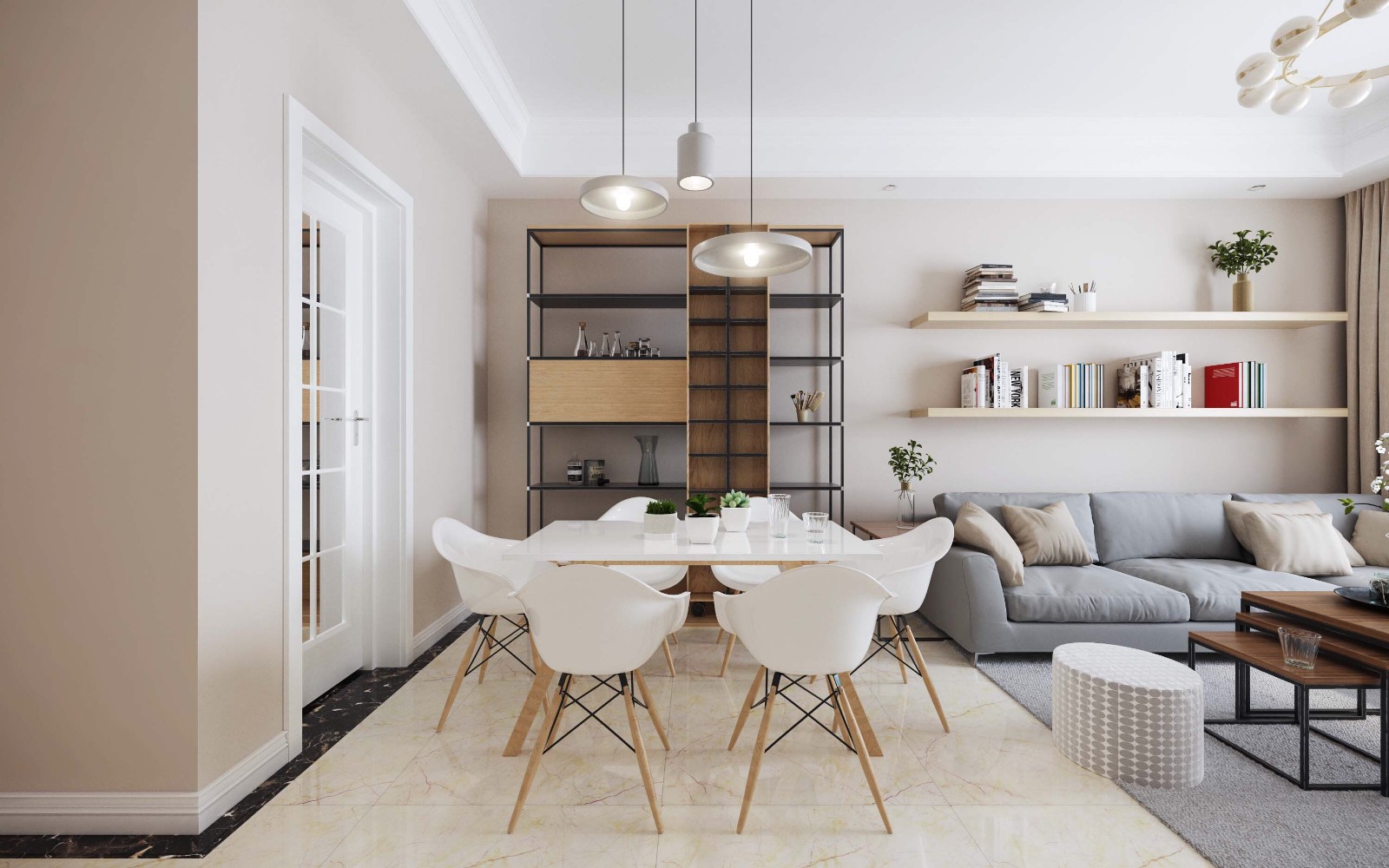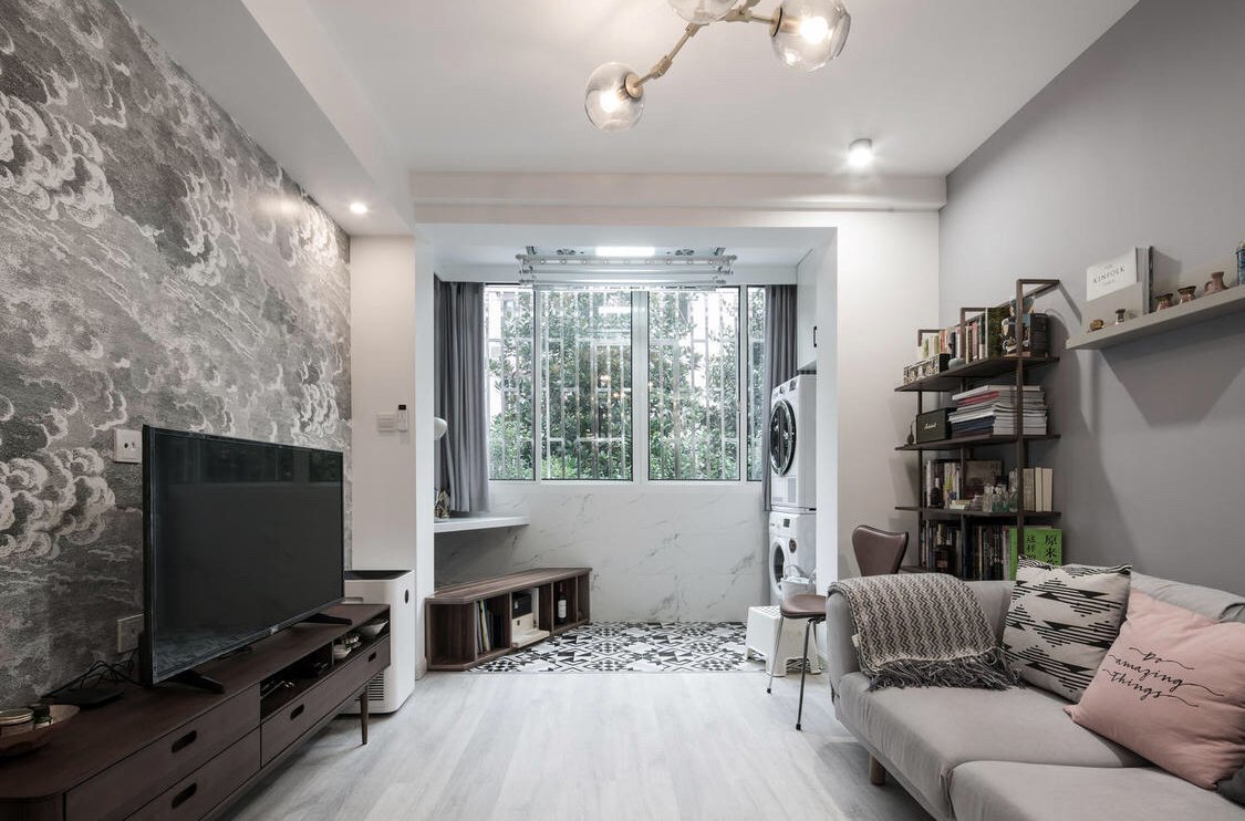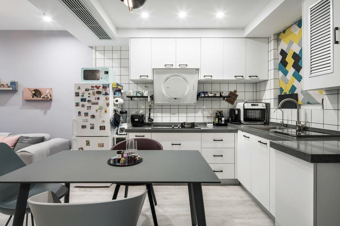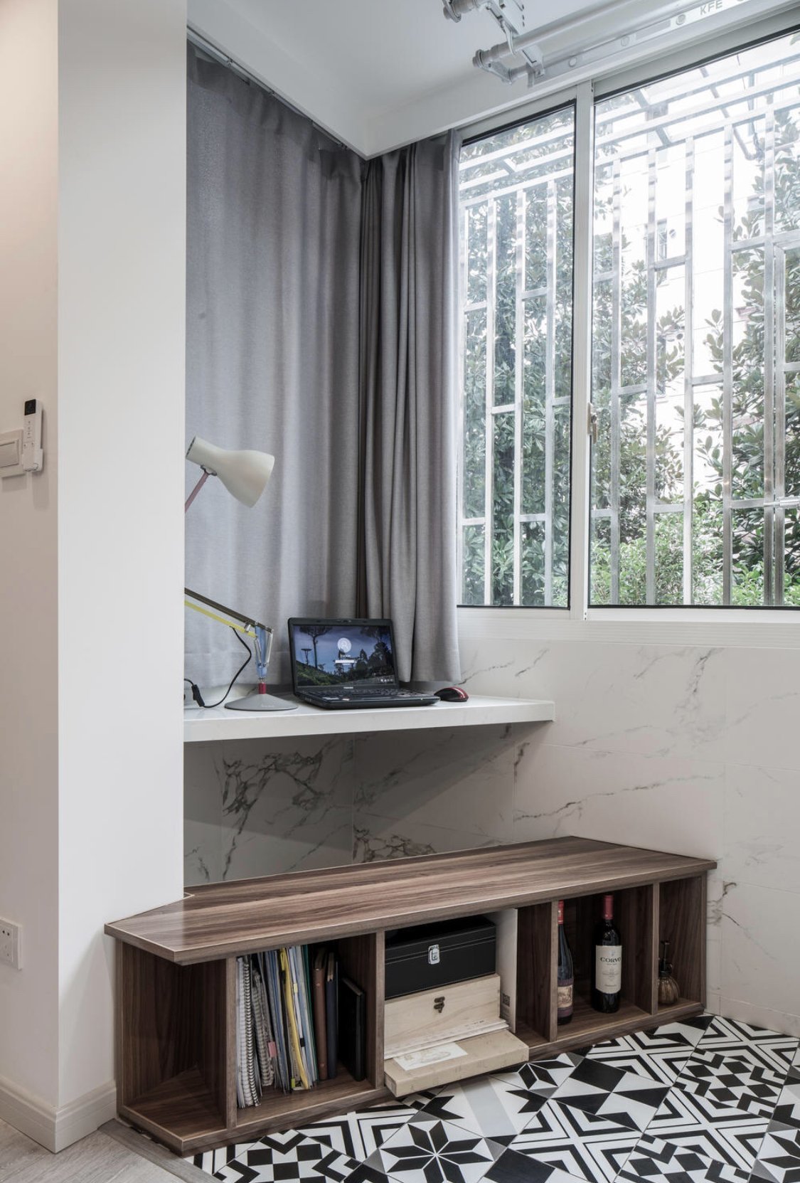 這套北歐風(fēng)的裝飾比較簡(jiǎn)單,整體上以白色和灰色為主,適當(dāng)用亮色增點(diǎn)空間,簡(jiǎn)潔又活潑。業(yè)主想要一個(gè)工作區(qū),所以設(shè)計(jì)師在陽(yáng)臺(tái)一側(cè)簡(jiǎn)單布置了一下,卡座的設(shè)計(jì)既不會(huì)占據(jù)太大空間,還有儲(chǔ)物的功能。
