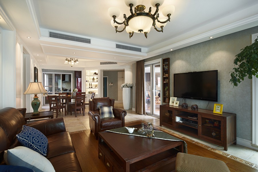 南寧萬匯華府毛坯房110平米美式風格裝修案例效果圖