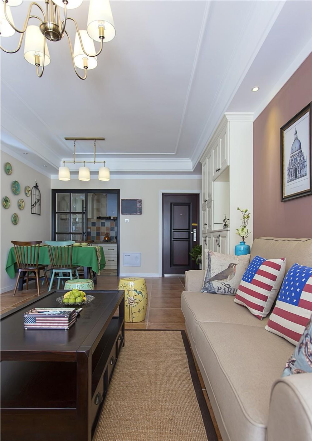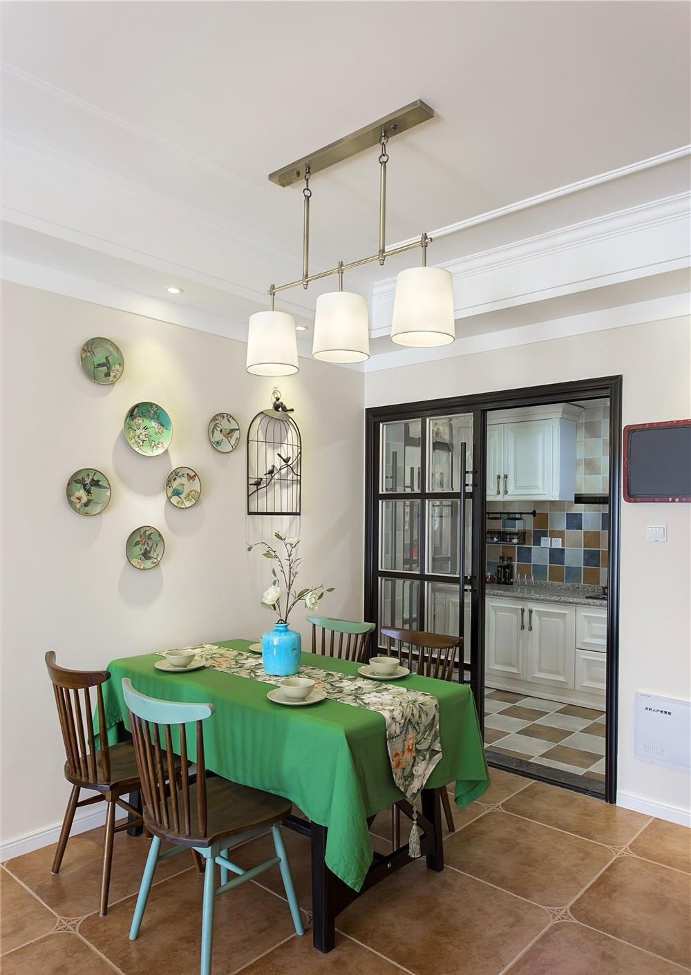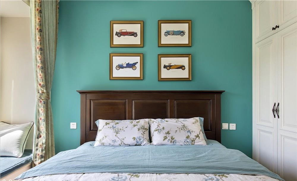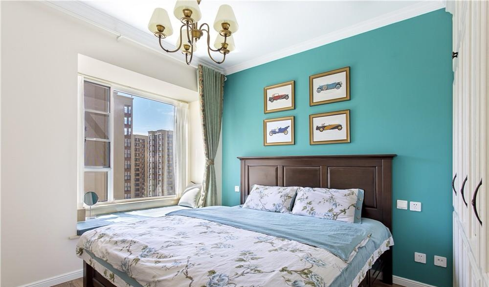 把祖母綠用在臥室背景墻的打造上,貴氣又高雅。田園風格重在打造一種溫馨舒適的氛圍,這套三居室摒棄了田園風格一貫使用的碎花裝飾,簡簡單單又不缺精致感。