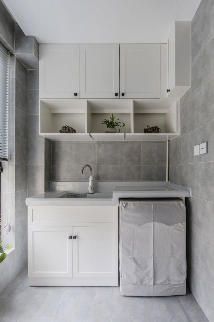 清新的美式田園風格,簡單又明亮的配色,隨時都能給人帶來好心情。陽臺安裝了洗漱臺和洗衣機,晾曬衣服的時候更為方便。