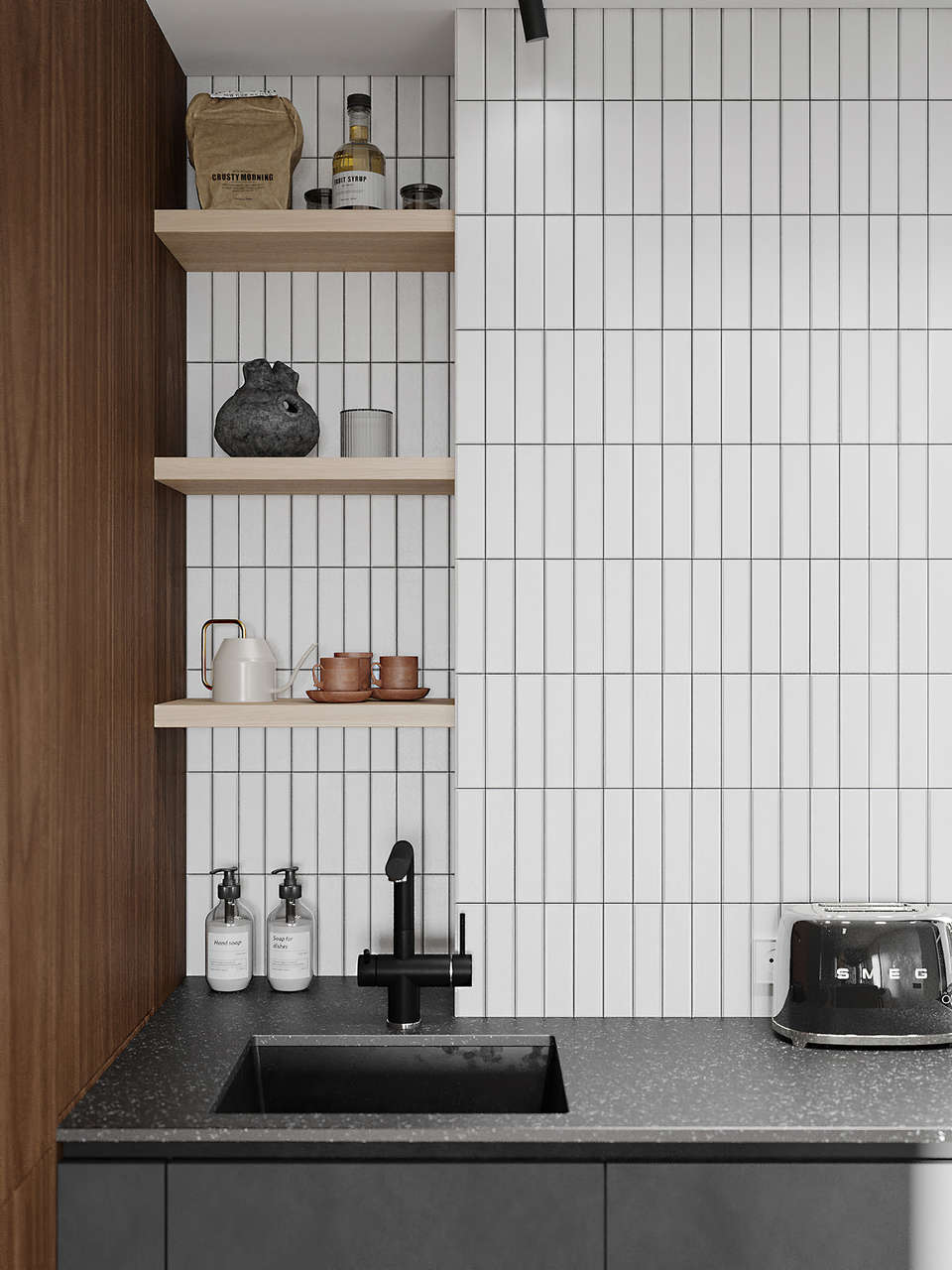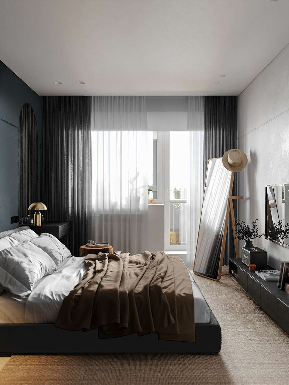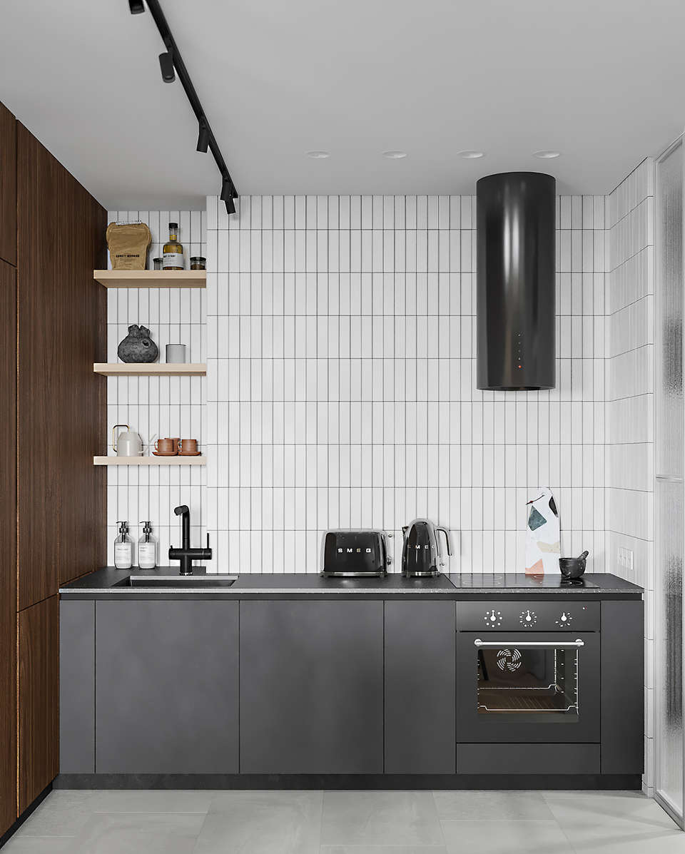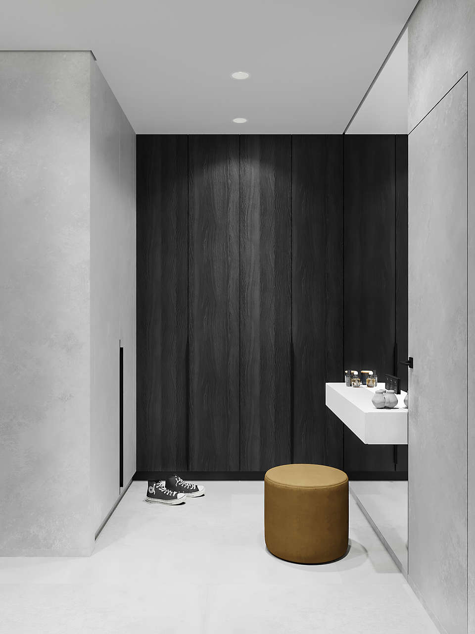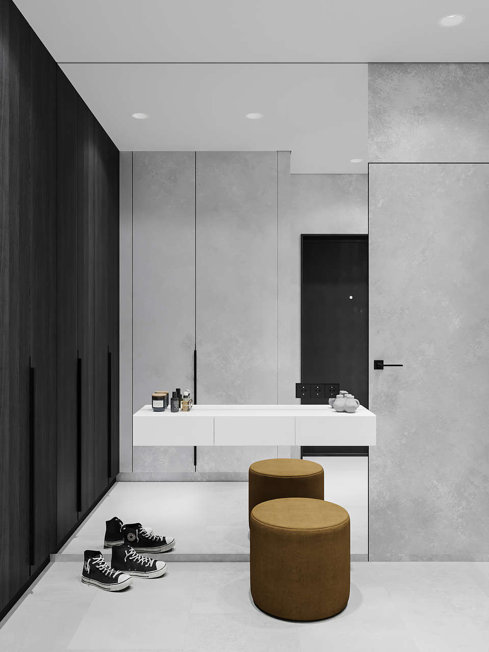 只保留一間居室,打造簡潔明亮的家居環境,以高級灰搭配原木色,充滿高級感也溫馨舒適。