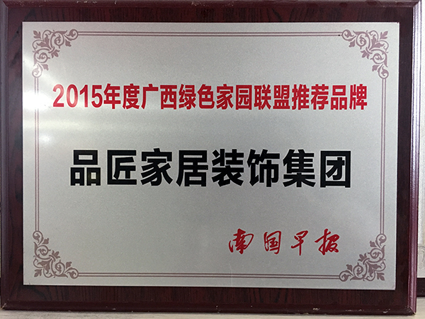 2015,品匠獲得南國早報頒發的“年度廣西綠色家園聯盟推薦品牌”獎項;