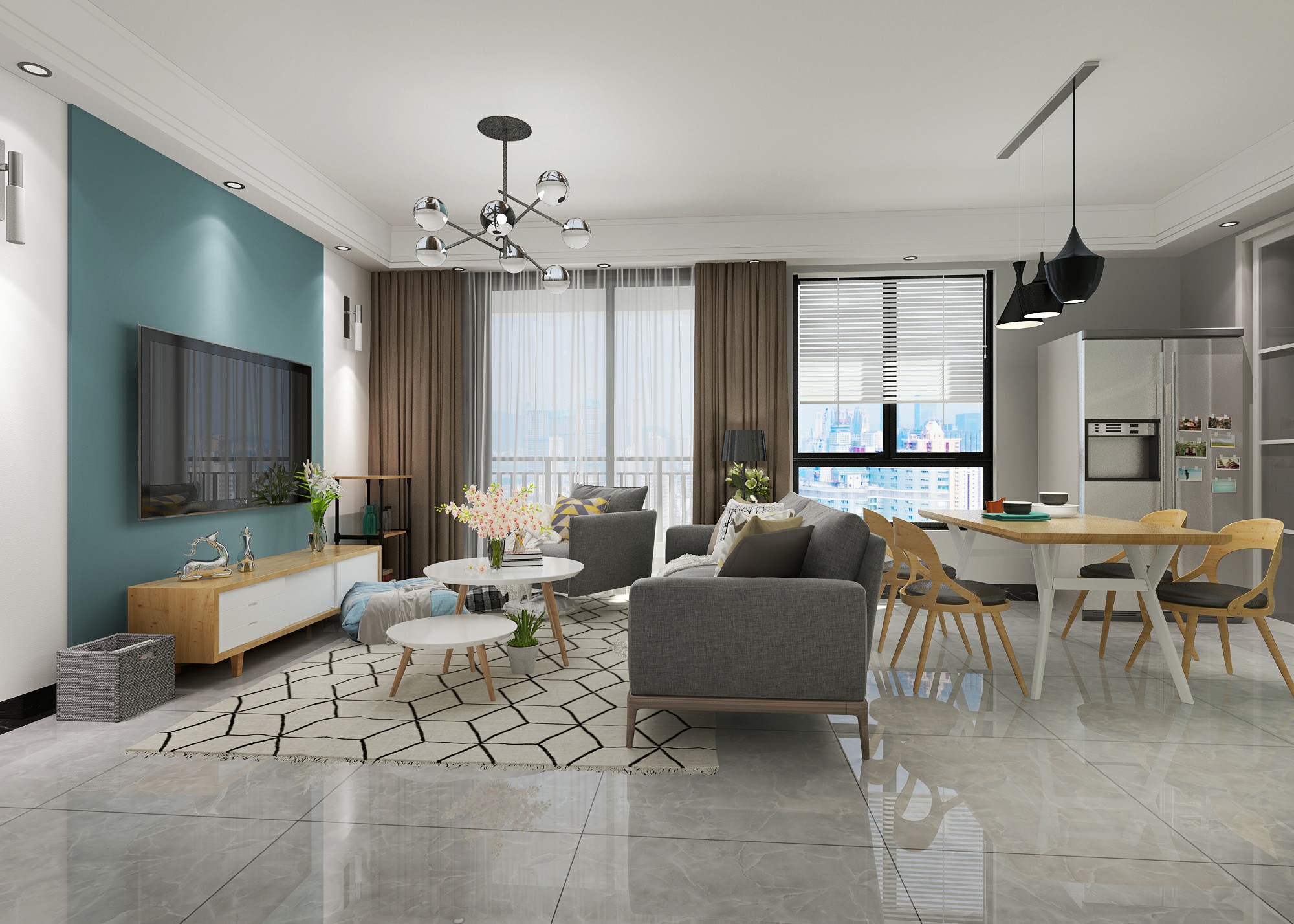 這是品匠的設計師為南寧馳騁天璽的業主設計的效果圖,業主家是一套97平米的三居室,風格是北歐風。客餐廳一體是很常見的戶型設計,為了保證采光,客餐廳之間并沒有設置隔斷,所以整個空間都很寬敞、透亮。